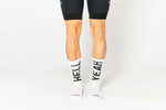 FINGERSCROSSED Socks Hell Yeah2.0-White offer top-notch design and performance. These socks are triple-strengthened in the toes and heels for ultimate comfort and durability. Made with PROLEN®YARN, they provide the best features for cycling socks.