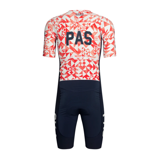 PAS is the Pas Normal Studios canvas for a uniform team experience. Cycling kit for a season of racing and training. For Spring/Summer 2025, we introduce a bold origami pattern - a collection created for the days you go all in.