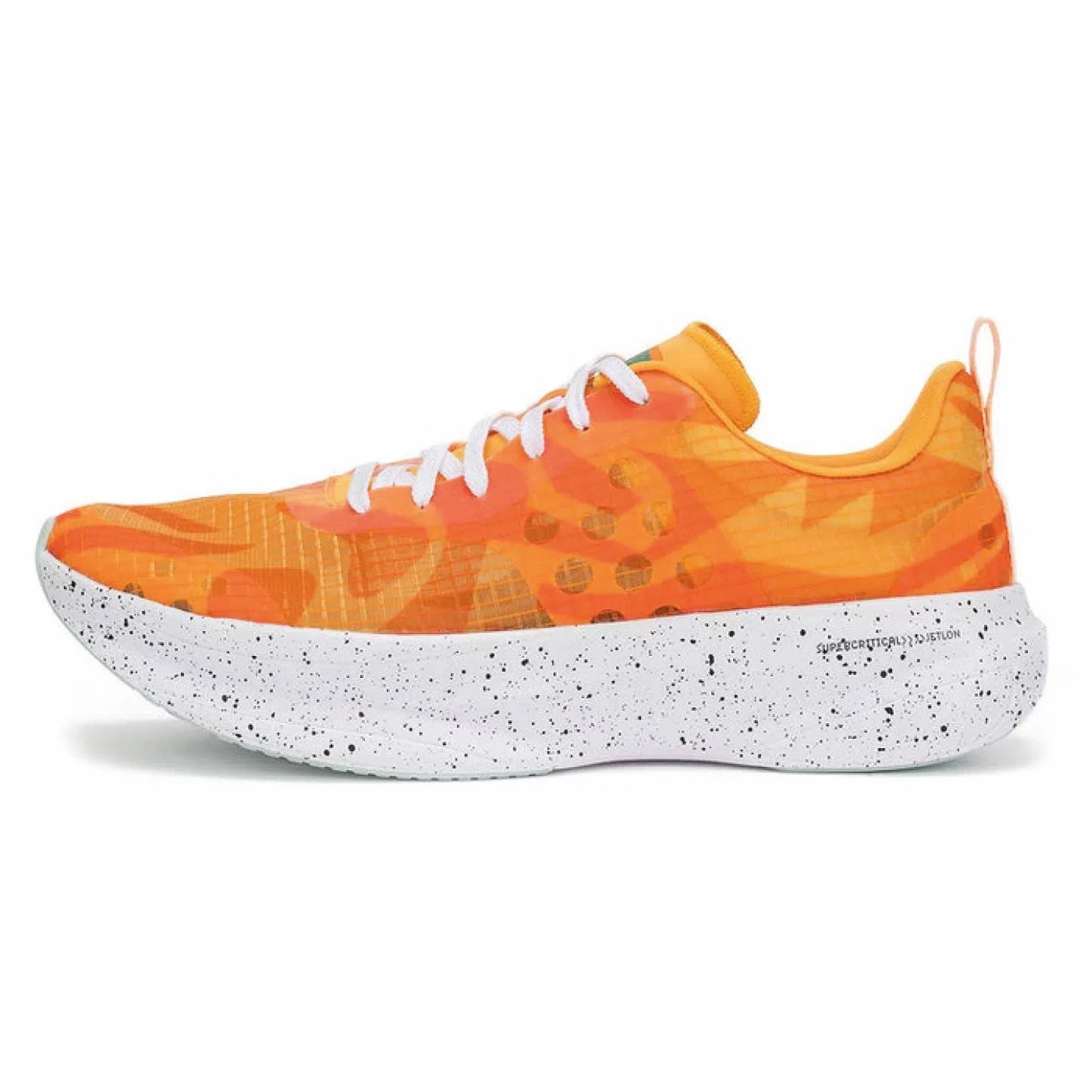 Kaiju concentra toda la tecnología que hemos desarrollado para el resto de la colección. Se trata de a zapatilla de alto rendimiento con a ntresuela de espuma patentada 'Supercritical' para crear a plataforma de atque ultra-absorbente junto a a metaplaca de Kevlar de ultima generación. La parte superior incorpora una malla de poliamida HT fusionada, liviana y resistente a la abrasión. Alturas de suela de 30 a 34mm y 198gr (Talla EU 42,5 / US 9).