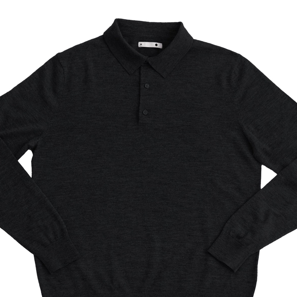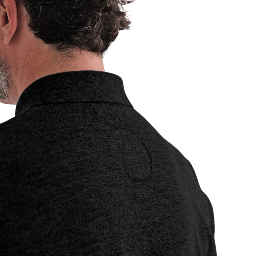 SILENCIOSA Merino Wool Langarm Polo - Schwarz