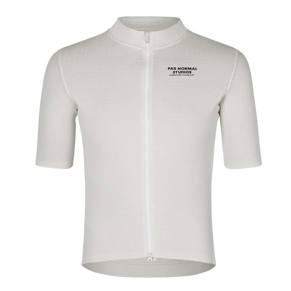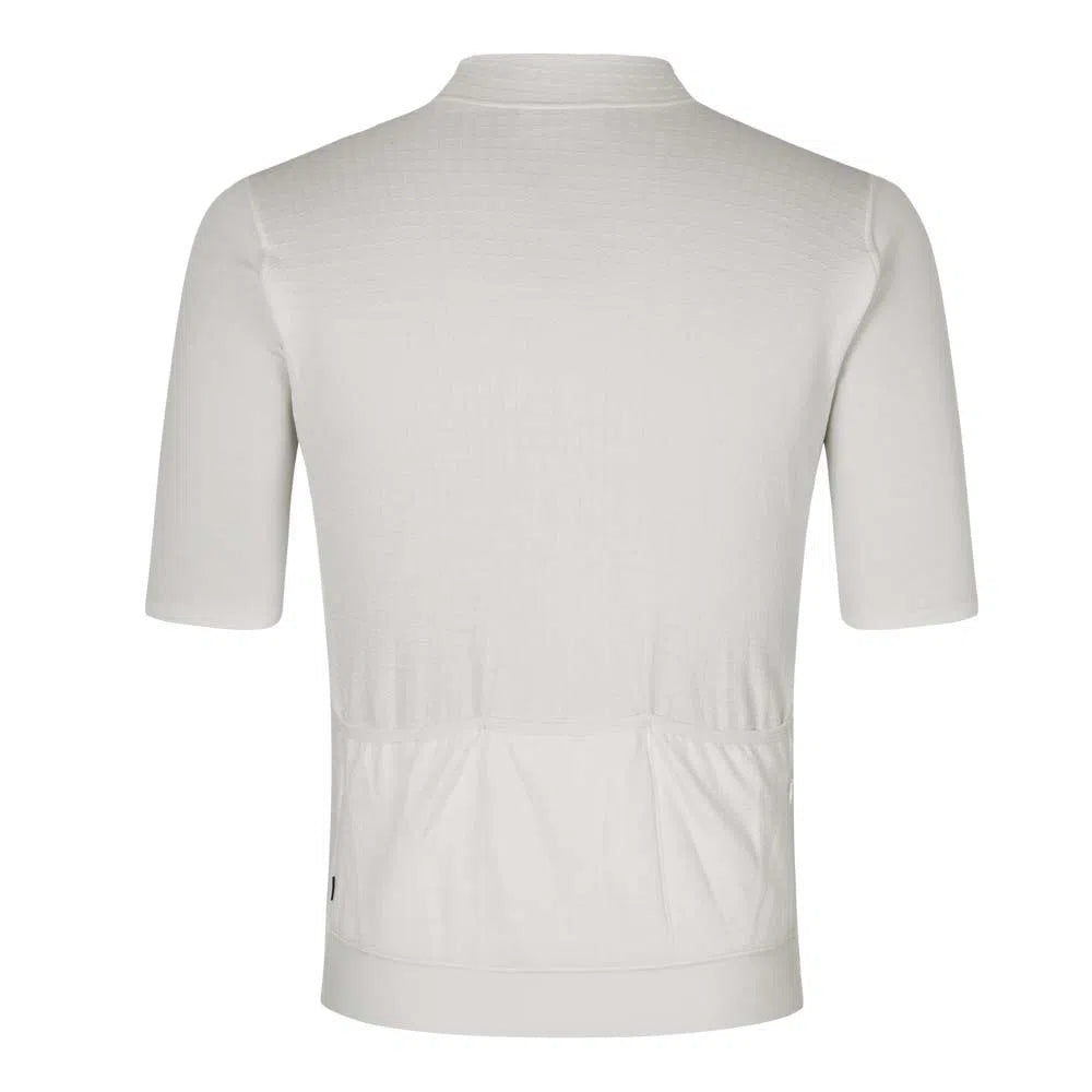 Die PAS NORMAL STUDIOS ESCAPISM Woll-Kurzarmtrikot - Off White wurde entwickelt, um Sie gegen die Kälte der Winter-/Frühlingsfahrten am frühen Morgen warm zu halten.