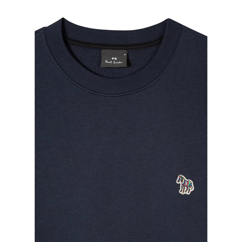 Dieses PAUL SMITH Zebra-Logo-Sweatshirt - Navy besteht aus 100 % biologisch angebautem Loopback-Baumwolljersey und zeigt unser klassisches Zebra-Motiv auf der Brust in einem farbenfrohen "Sports Stripe"-Muster.