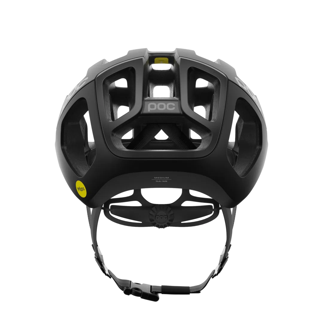 Der POC Ventral Air MIPS Cycling Helmet - Uranium Black Matt ist ein Rennradhelm, der entwickelt wurde, um Schutz und Belüftung für Radfahrer zu bieten. Er ist geeignet für verschiedene Fahrradsituationen, einschließlich Training und Rennen. Dieses Modell integriert MIPS-Technologie für verbesserten Schutz bei Rotationsaufprall.