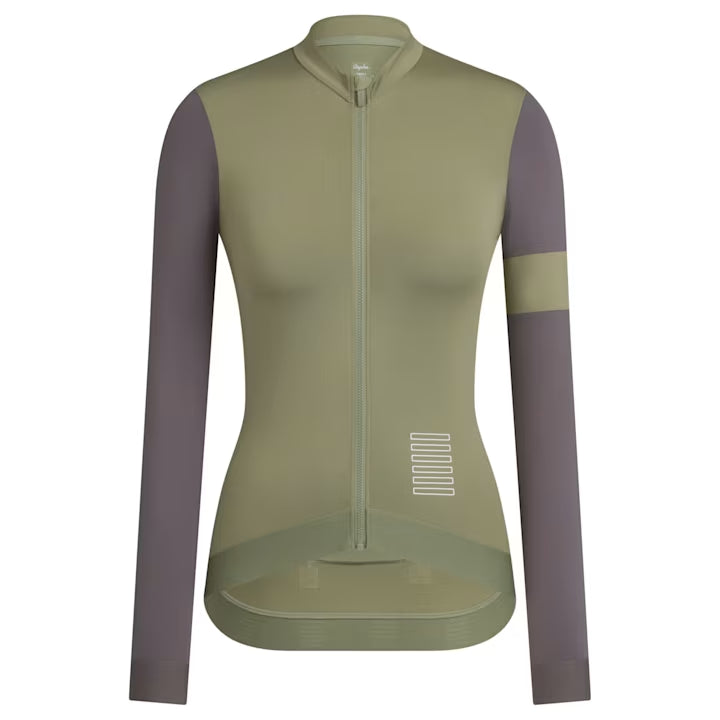 RAPHA Pro Team Training Langarmshirt für Frauen Fahrradtrikot AW2023 - OGK Olive Grün/Mushroom