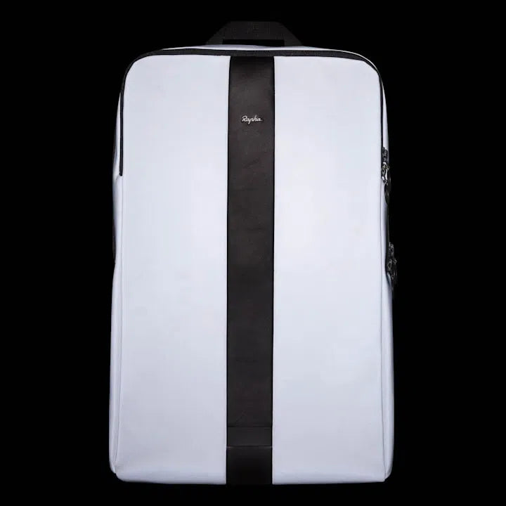 Die Reisetasche mit mattem Hauptkörper, wasserfester Beschichtung und Lederstreifen mit gegossenem Metall-Rapha-Logo trägt Ihre Essentials mit Stil, egal ob Sie in die Stadt oder weg fahren. Neue Verbesserungen umfassen ein geformtes Rückenpaneel mit Kanälen zur Anpassung an Ihren Körper und zur Förderung der Luftzirkulation, sowie eine kleine Reißverschlusstasche für Schlüssel und andere Essentials, die auch mit dem Regenschutz der Tasche schnell zugänglich ist. Die Tasche bietet Platz für einen 13-Zoll-Laptop, hat einen magnetischen Brustgurt zur Stabilisierung und eine schnelle Zugriffstasche für kleinere Gegenstände unterwegs.