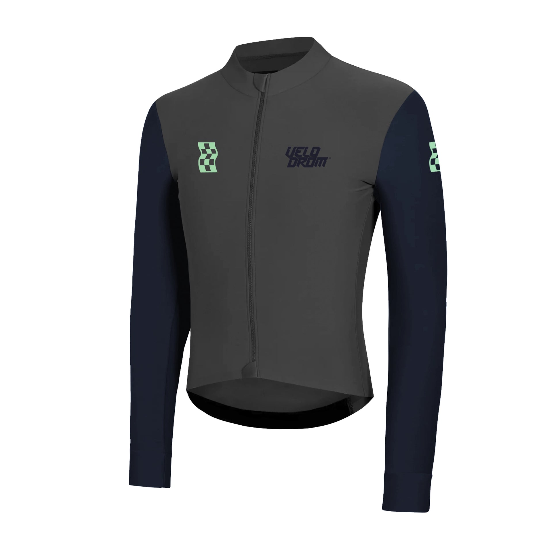 VELODROM RaceDay Thermal Langarmtrikot - Medium Grey/Navy Dual Sleeves