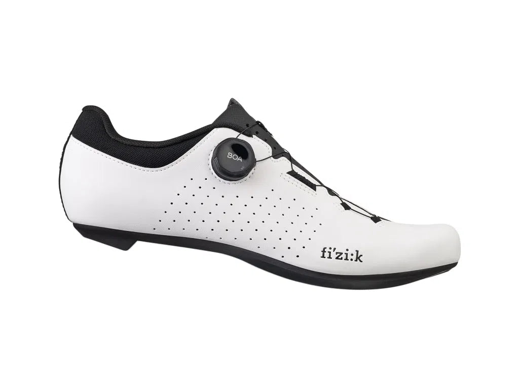 Les chaussures de cyclisme FIZIK VENTO OMNA R5 sont des chaussures de route conçues pour la performance et le confort lors de l'entraînement ou des courses. Adaptées à une gamme de cyclistes sur route, ces chaussures sont destinées à fournir un transfert de puissance efficace et un maintien sécurisé du pied. La couleur blanche offre une apparence classique, et le modèle est disponible en plusieurs tailles EU.