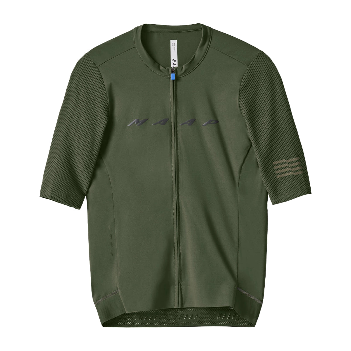 Introducing the MAAP Evade Pro Base Jersey 2.0 AW2024 in stunning Bronze Green. This high performance cycling jersey is designed for maximum comfort and style. Made from lightweight, breathable material, it is perfect for long rides or intense training sessions. The jersey features a sleek, ergonomic fit and moisture-wicking properties to keep you cool and dry. It also boasts a full-zip front for added ventilation and three back pockets for storage. With its eye-catching color and top-of-the-line features, the MAAP Evade Pro Base Jersey 2.0 AW2024 is a must-have for any serious cyclist.