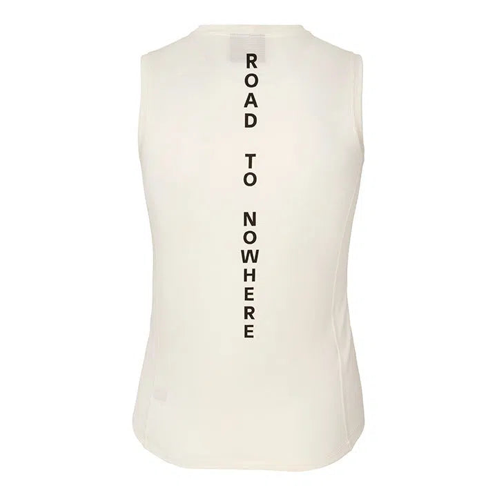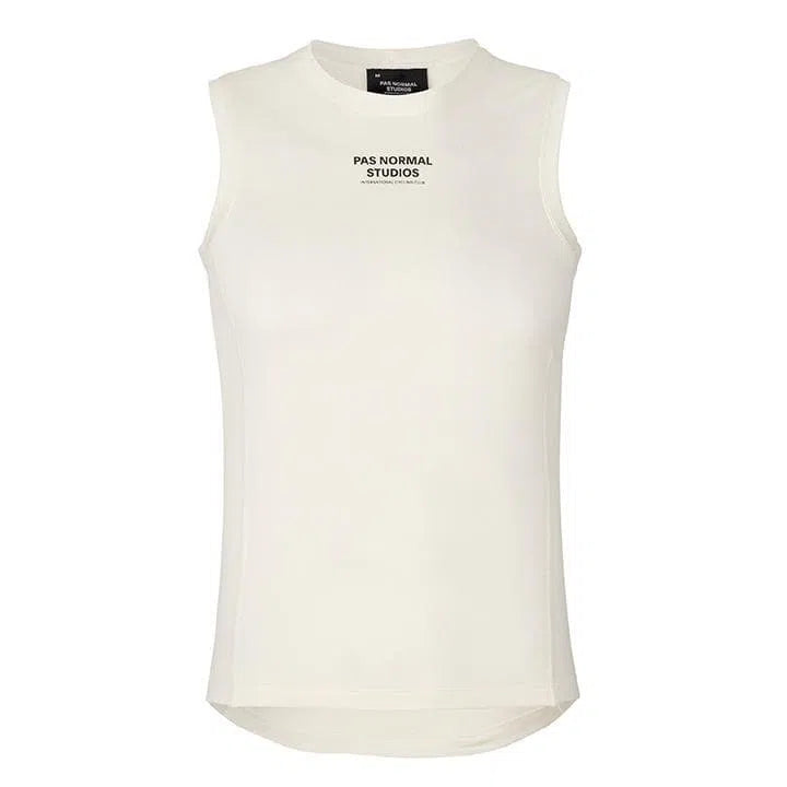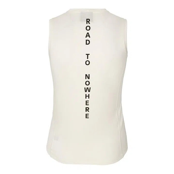 De PAS NORMAL STUDIOS Mid Sleeveless Baselayer - Off White is een fietsonderlaag ontworpen voor gebruik onder jerseys en buitenkleding. De primaire functie is het reguleren van de lichaamstemperatuur en het beheren van vocht tijdens het fietsen. Dit model is geschikt voor verschillende fietsdiciplines en bedoeld voor gebruik bij matige tot warme omstandigheden.