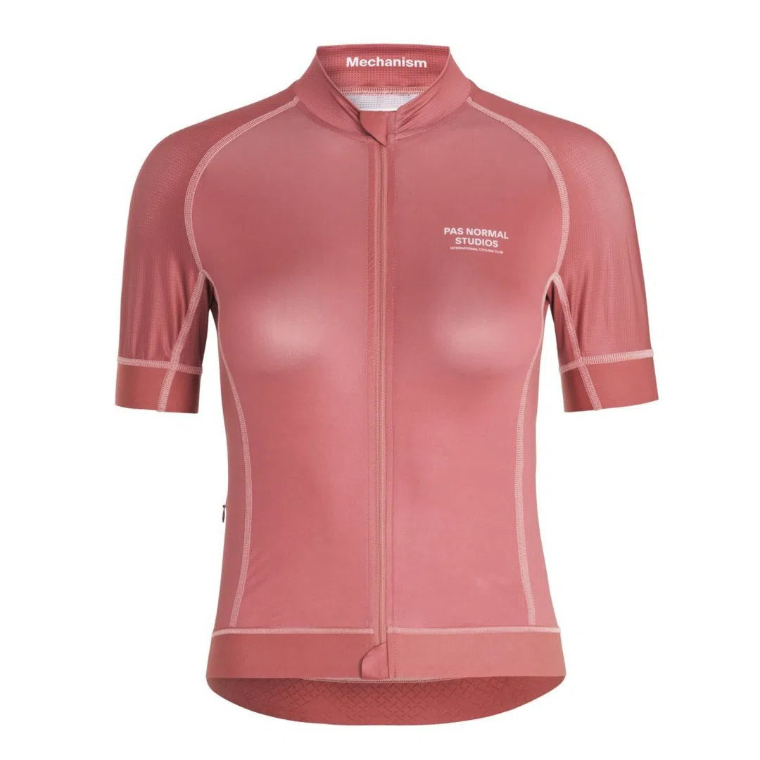 The PAS NORMAL STUDIOS Mechanism Women Jersey in Dusty Rose is a signature cycling jersey with a seamless monochrome style and fashionable aesthetics. It features an aerodynamic fit and super lightweight fabrics, perfect for races or high-paced rides in the hottest summer weather. The side and rear panels are made of highly breathable perforated fabric with moisture absorption and fast-drying properties. The racing silhouette provides aerodynamic advantages, and the full-dyed elastics keep the jersey in place. Remember to size up in the Mechanism Women Collection for a better fit.