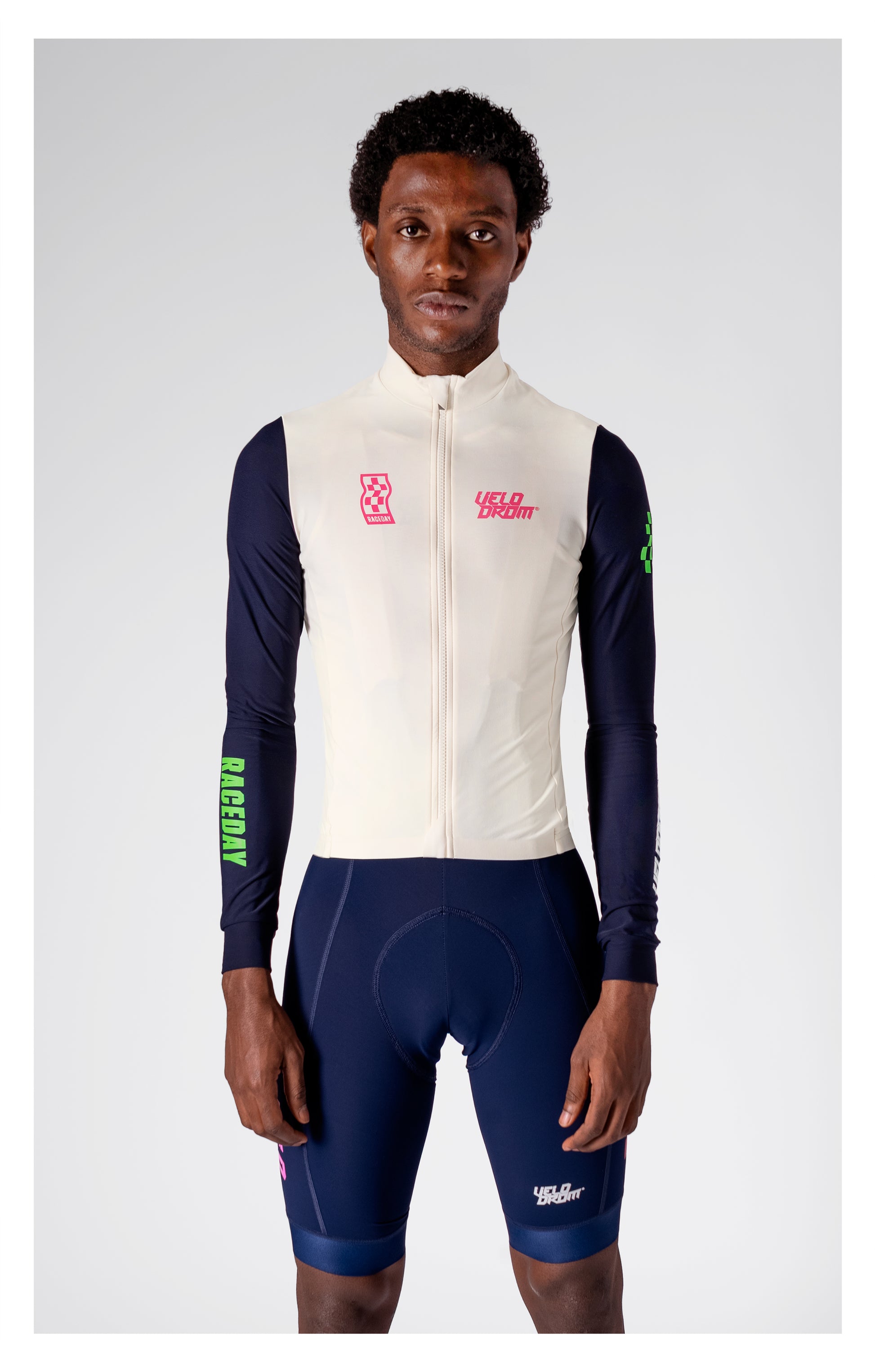 VELODROM RaceDay 3.0 Thermal Fietsshirt lange mouwen - Off Wit/Dark Navy Dual Sleeves