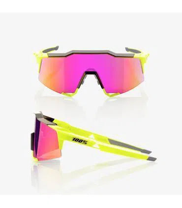 RIDE 100% Eyewear Speedcraft Polished Black/Fluorescent Yellow - Purple Multilayer Mirror Lens