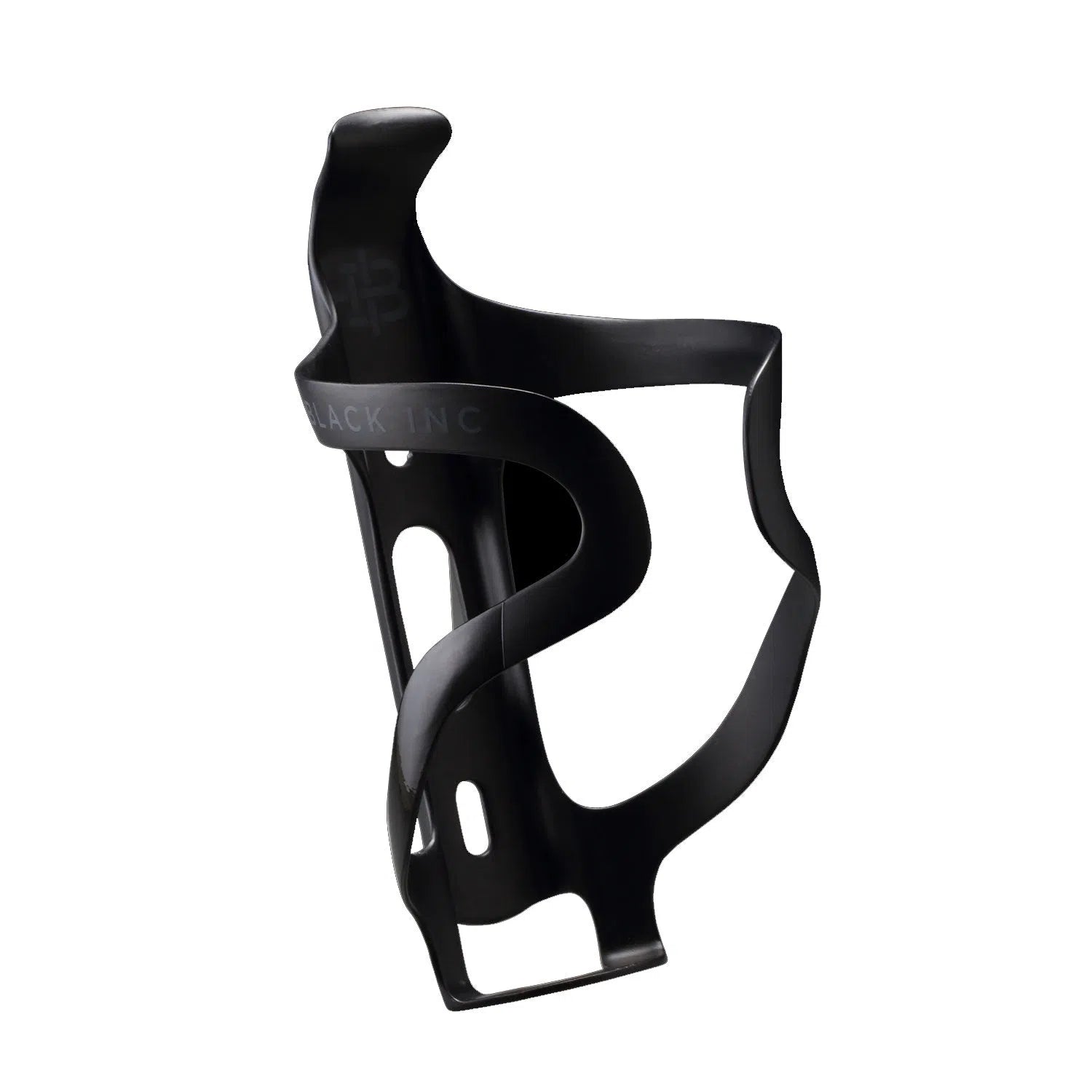 The BLACK INC CarbonFiber Bottle Cage - Black is a lightweight accessory designed to securely hold standard cycling water bottles on a bicycle frame. Suitable for road, gravel, and mountain bikes, this bottle cage is constructed from carbon fiber to provide strength and durability while minimizing weight. It is compatible with most bicycles that feature standard bottle cage mounting points.