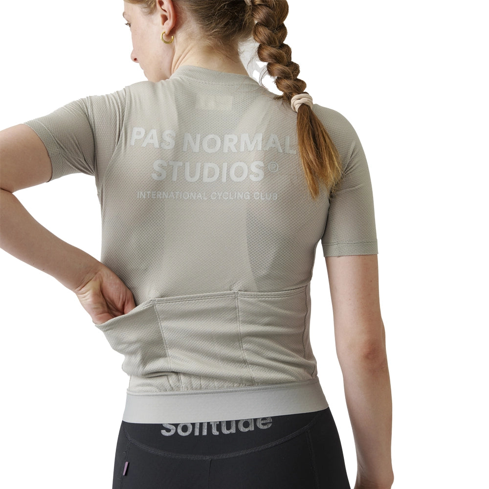 Introducing the PAS NORMAL STUDIOS Solitude Mesh Women Jersey SS23, a lightweight cycling jersey that excels in both style and performance. Crafted from a durable fabric with a high strength-to-weight ratio, this jersey offers a comfortable fit. The integrated structured surface and unique color patterns ensure colors never fade. With 15 panels cut by laser and assembled in Italy, moisture is dispersed effectively. This jersey is the perfect blend of performance and style, available in Light Grey colorway.