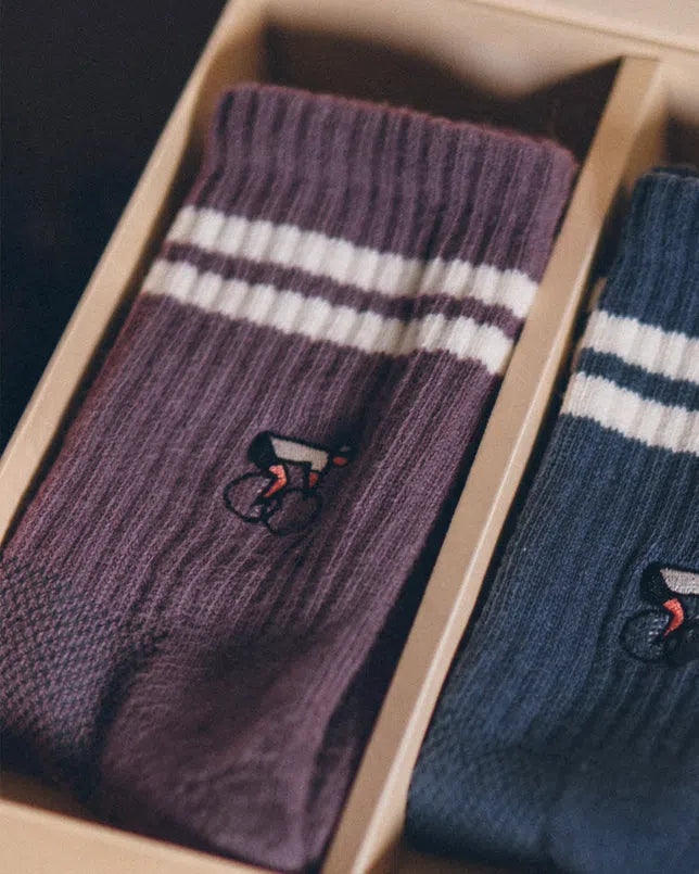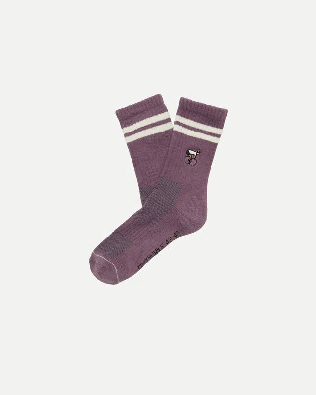 Introducing our ERSTWHILE Socks Crew, crafted in Turkey with 90% cotton, 7% polyamide, and 3% elastane for ultimate comfort. These crew socks feature superior breathability and anti-odor properties, along with an ergonomic design for long-term wear. The stylish vintage look in purple and ivory adds a touch of sophistication. Better and improved with new knit and mesh for extra cushioning, these socks are perfect for any occasion. Features include: