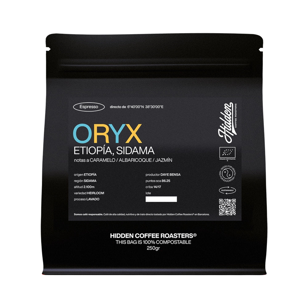 Introducing Hidden Coffee Roasters - Oryx, a meticulously sourced and roasted blend from the Sidama region of Ethiopia. This African coffee features fruity notes and a perfect balance of chocolate and fruit flavors, appealing to all palates. Indulge in its floral and fruity hints, reminiscent of juicy peach juice. Grown at an altitude of 2,100 meters, our Oryx blend benefits from the high altitude of the Sidama region, resulting in superior quality coffee. Processed using the traditional washed method and carefully roasted to perfection.