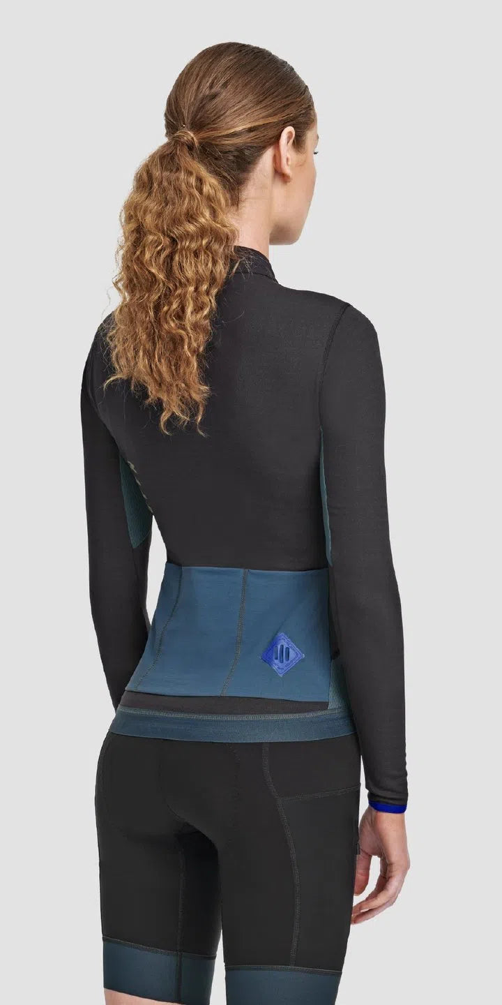 The MAAP Alt Road Long Sleeve Women Jersey - Graphite is part of the Alt Road Collection, designed for gravel and bike packing adventures. Made with a mid-weight stretch extra-fine merino virgin wool blend, this jersey offers natural Match® wool technology for optimal performance. Hydrophilic properties enhance moisture management, while thermal regulating insulation provides comfort. Antimicrobial, anti-odour, and UV UPF 50+ protection ensure durability and protection. Features YKK® zippers, an elastic hem band, and stretch ripstop Cordura® back pocket. The jersey also includes stretch woven ripstop side body panels, a back zipper stash pocket, and reflective branding for visibility. bluesign® APPROVED fabrications guarantee quality. PRODUCT MATERIALS: PRODUCT WEIGHT: 250 g - 8.82 oz, MAIN FABRIC CONTENT: 48% Polyamide, 4% Elastane, 48% Wool, MAIN FABRIC WEIGHT: 210 g/m2 - Midweight.