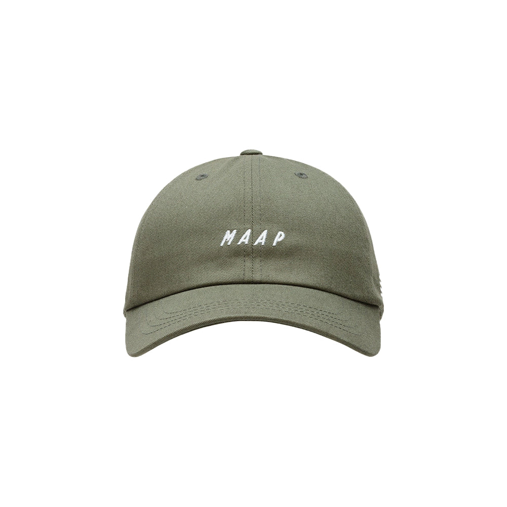 Elevate your casual look with the MAAP Dad Cap - Army. Made from soft peached cotton twill, this classic hat features a 6-panel design and a brass buckle closure for a customized fit. The curved visor with a low-profile design adds a stylish touch, while the embroidered MAAP logos on the front and side bring a unique element to the cap. Ideal for outdoor activities, running errands, and everyday wear, this cap is a versatile addition to your wardrobe.