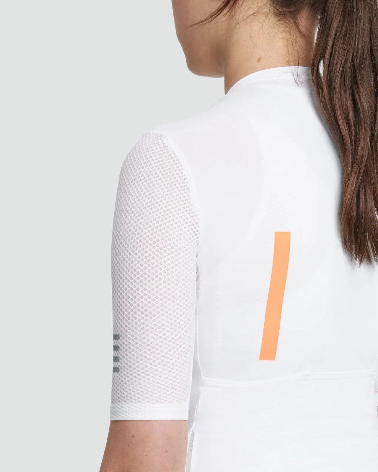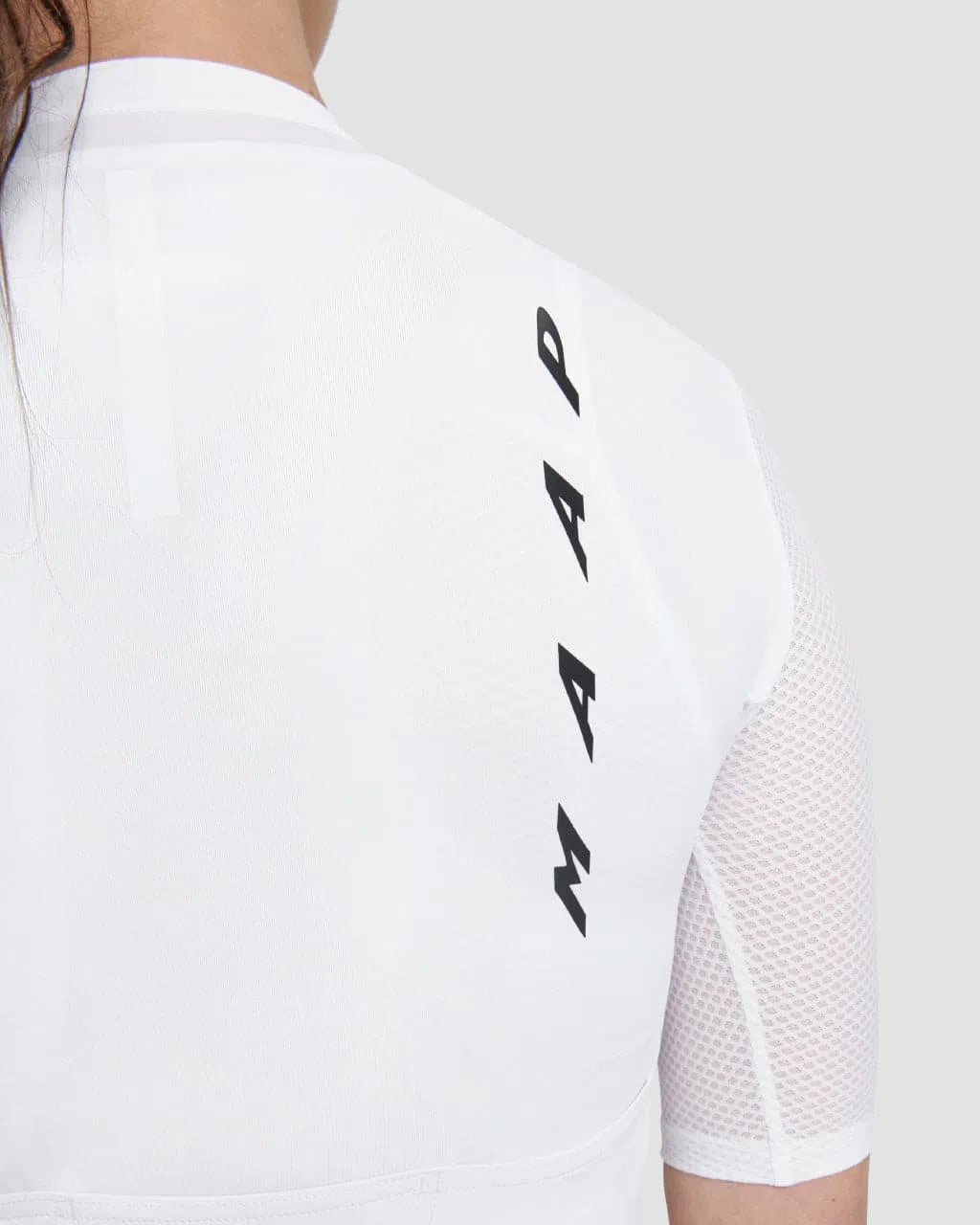 The Maap Evade Pro Base Women SS Jersey in White is made from ultra soft knitted Italian fabric that enhances airflow and provides SPF50+ sun protection. The honeycomb mesh sleeves offer superior comfort and SPF15+ sun protection, making it a fantastic summer staple for women.