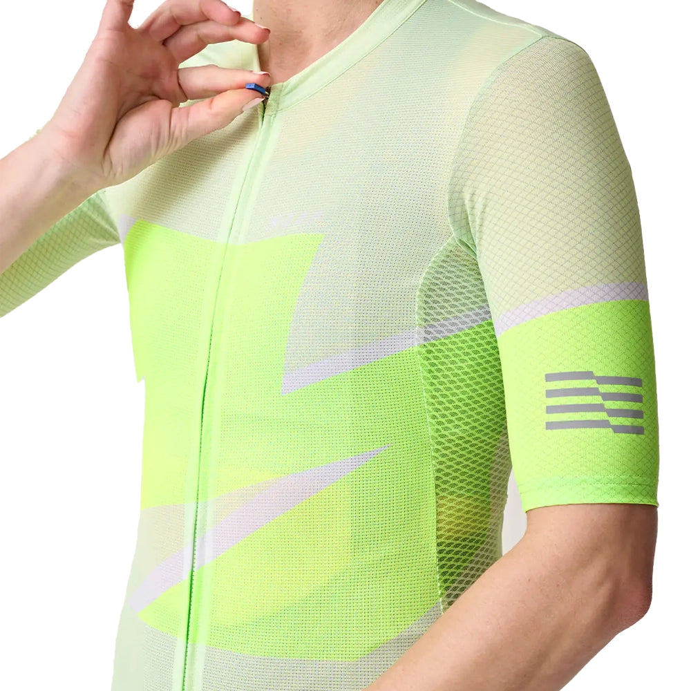 Introducing the MAAP Evolve 3D Pro Air Women Jersey 2.0 - Dew SS23, a lightweight jersey crafted for optimal performance. Constructed from recycled yarns, this jersey boasts contoured panelling, a low profile collar, and warp-knit sleeves with carbon yarn technology. The ultra-lightweight mesh side and back panels ensure maximum airflow on hot days, enhancing both performance and style.