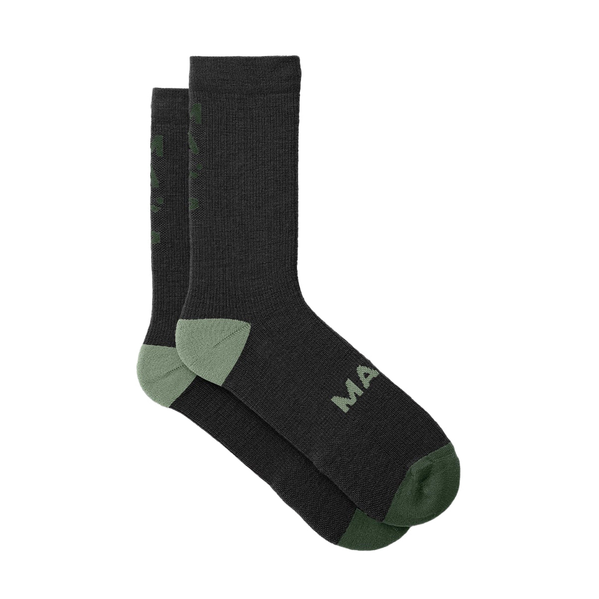 The MAAP The Arrivals Socks - Black are cycling socks designed to provide comfort and support during road and off-road cycling activities. These socks are suitable for use in various weather conditions and are intended to enhance moisture management and fit for cyclists. The product is manufactured by MAAP, a recognized brand in cycling apparel.