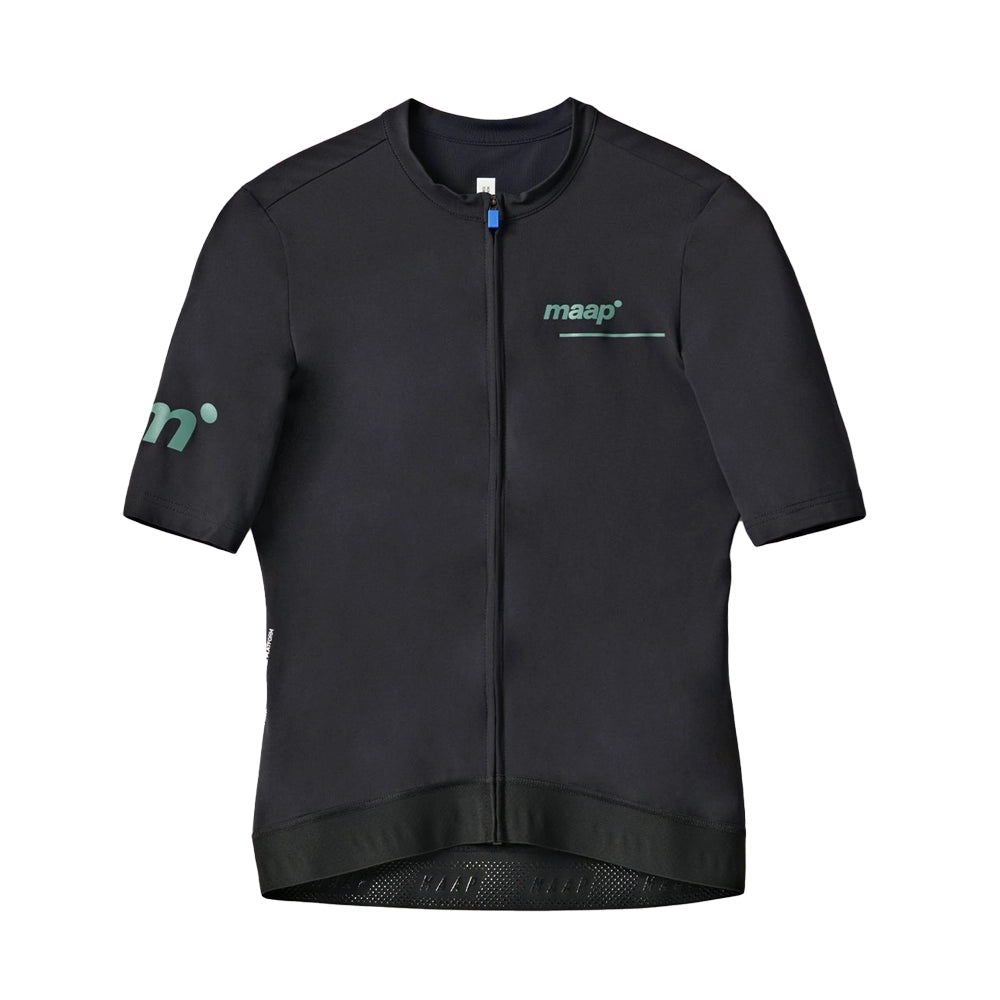 Featuring an elasticized hem with an internal gripper, this jersey can be paired with any bib shorts. It also includes a stash pocket and three rear pockets with a bonded edge for ample storage without compromising style. The Team-Fit design with a low-profile collar and set-in sleeve ensures a comfortable fit all day long. Reflective graphics on the back, chest, and sleeve enhance visibility in low-light conditions for added safety. Elevate your training with the MAAP Training Jersey!