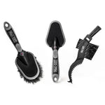 The MUC OFF Premium Brush Set - 3 Units is a set of cleaning tools designed for maintaining bicycles. This product is intended for effective cleaning of various bike components, including frames, wheels, and drivetrain parts. It is suitable for use by cyclists seeking to keep their equipment free from dirt and debris.