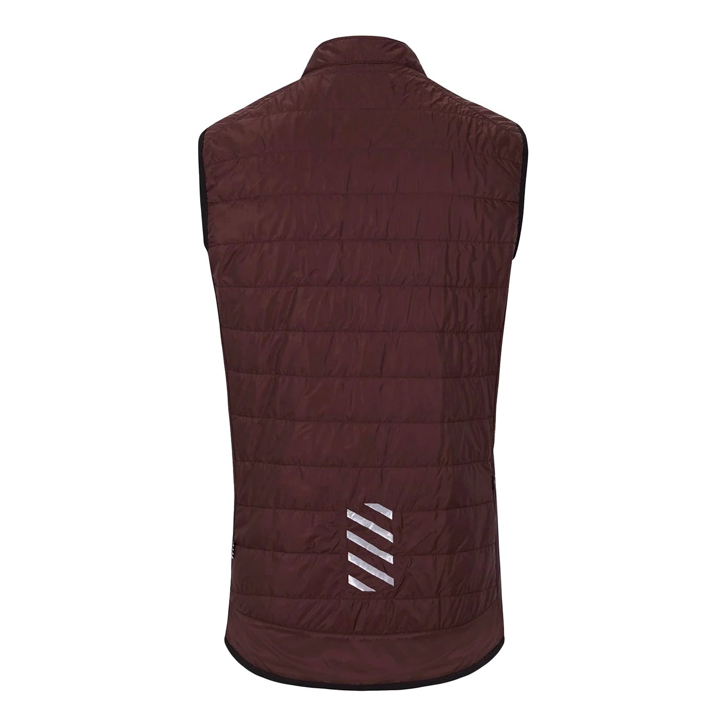 The NDLSS Insulated Gilet - Dark Wine is a sleeveless cycling vest designed to provide lightweight thermal insulation for cyclists. Its primary purpose is to offer core warmth during cool weather rides while maintaining breathability and freedom of movement. This gilet is suitable for layering over jerseys in variable conditions and is commonly used for road, gravel, or commuting applications.