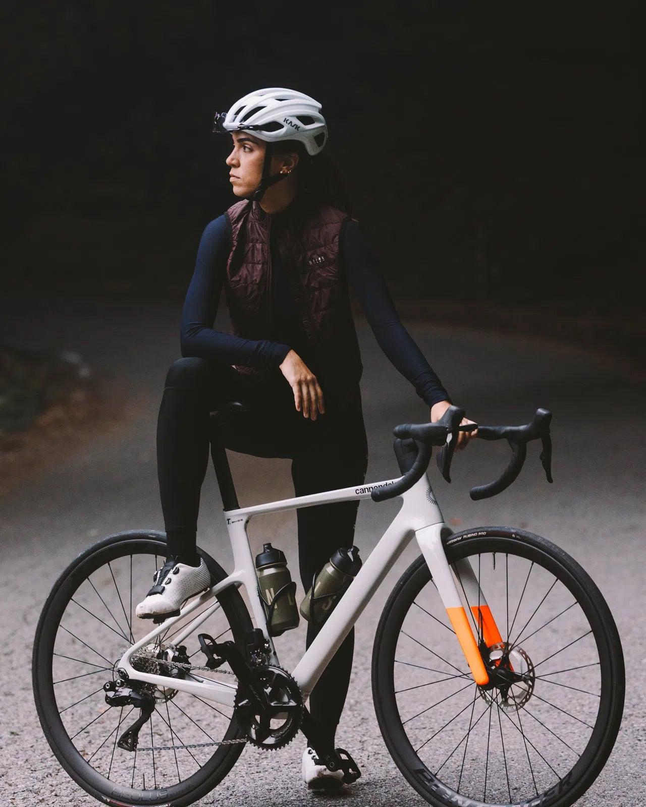 Technical note: Insulated gilets are commonly used as an outer or mid-layer in cycling to balance warmth and breathability, especially during transitional seasons.