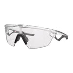 The OAKLEY Sphaera Eyewear - Matte Clear Photochromic is a cycling eyewear product designed to provide eye protection and visual clarity in varying light conditions. This model is suitable for road cycling, mountain biking, and other outdoor activities where eye safety and adaptability to changing light are important. The eyewear features a photochromic lens and a matte clear frame finish.