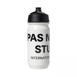 The PAS NORMAL STUDIOS Bidon Logo - White is a cycling water bottle designed for hydration during rides. It is suitable for use with most standard bicycle bottle cages and is intended for both road and off-road cycling. The product features the PAS NORMAL STUDIOS logo and is constructed for everyday cycling needs.
