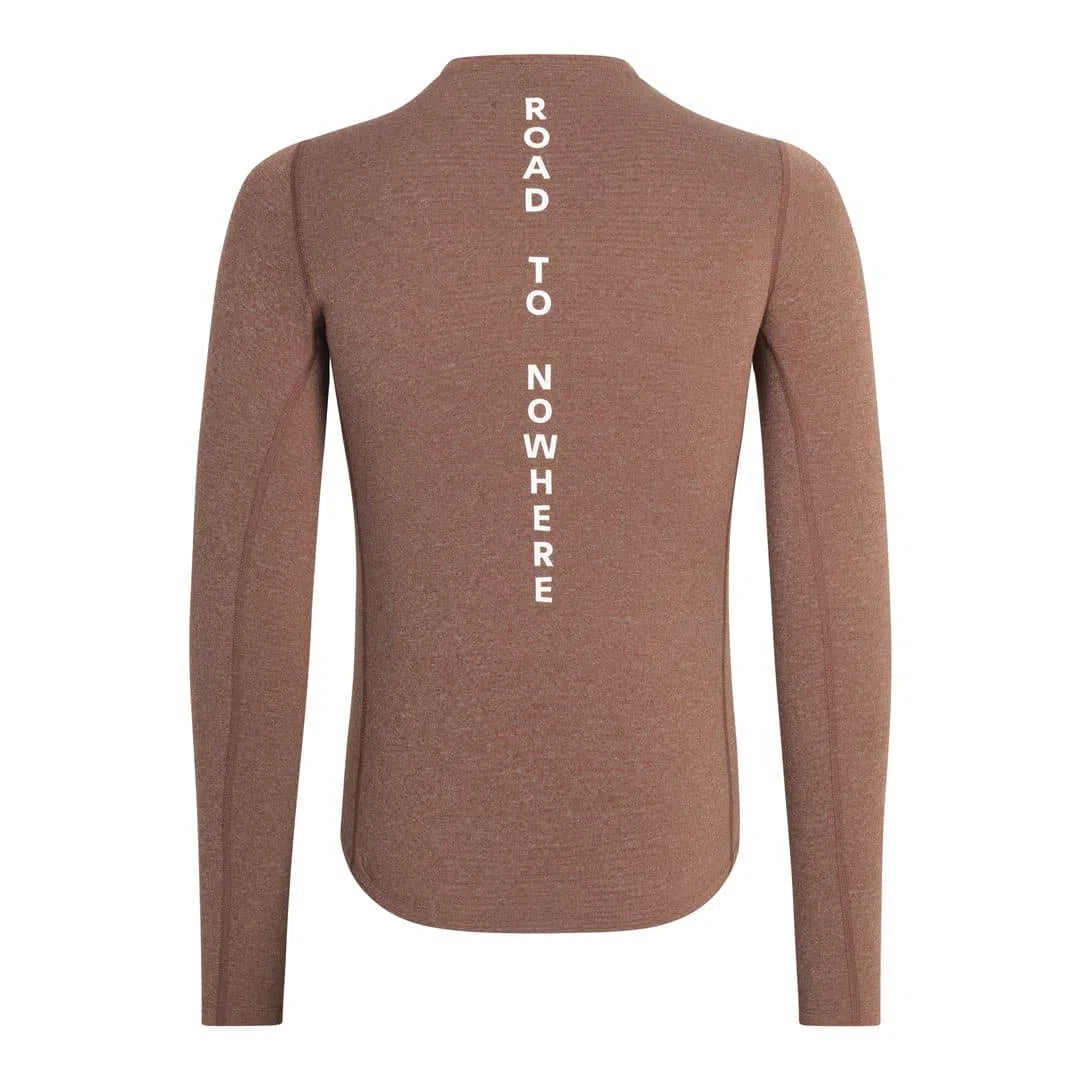 The PAS NORMAL STUDIOS Thermal Long Sleeve Baselayer in Hazel is made with Polartec Power Wool fabric, combining merino wool for moisture control and durability. This baselayer is perfect for cold and wet weather, offering comfort and warmth. It is unisex, but women may prefer to size down for a better fit.