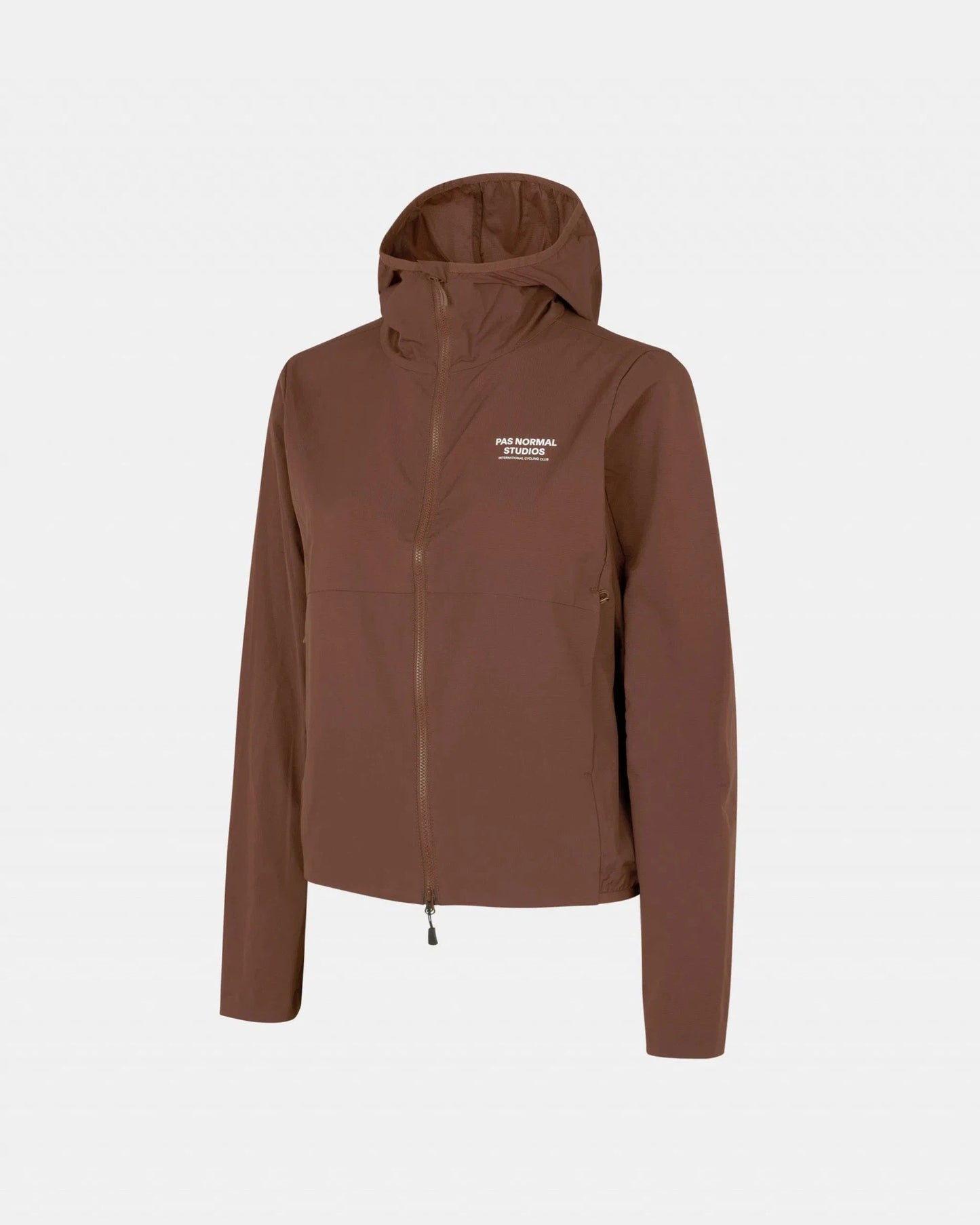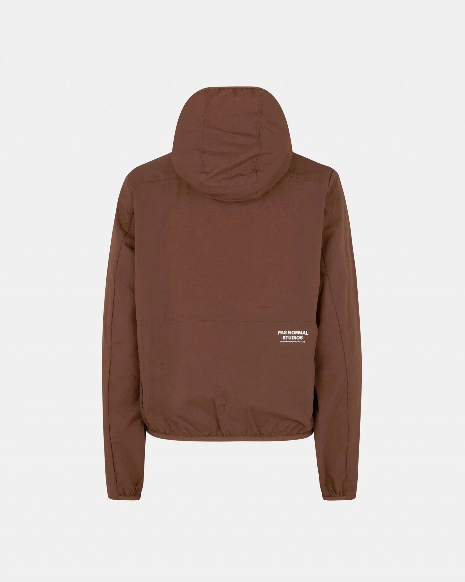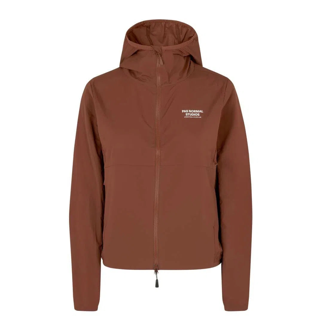 The PAS NORMAL STUDIOS ESCAPISM Stow Away Women Jacket in Rust is a super lightweight outer layer that provides exceptional reliability for unpredictable weather. Made from a super-light ripstop fabric, this jacket features a subtle gritted internal layer structure to keep the jacket off the skin and prevent wet-cling. The tightly-knit nylon fibers resist wind penetration and tearing. The jacket easily packs away into its integrated back pocket when not in use.