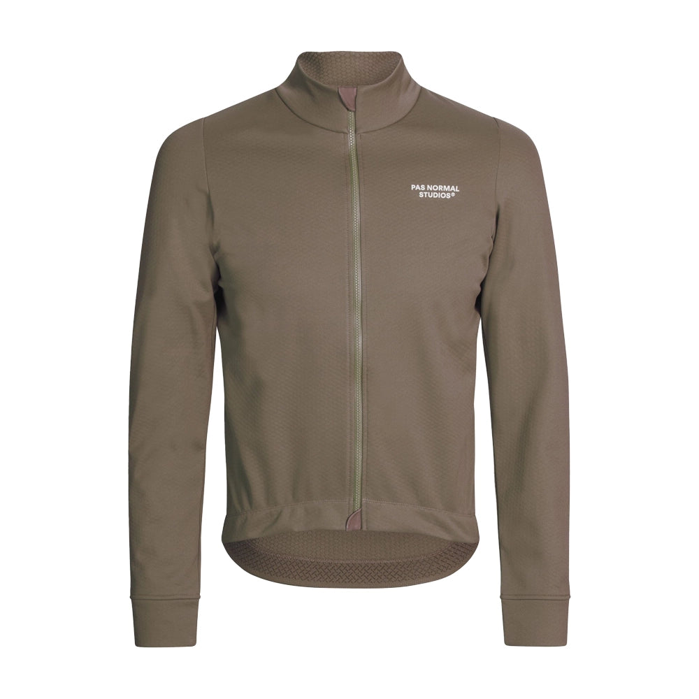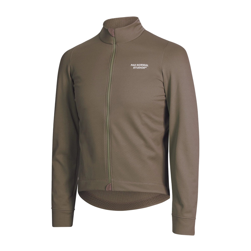 Introducing the PAS NORMAL STUDIOS Essential Thermal LS Jersey AW23 - Ash Brown, a versatile piece that combines the features of a jacket and a traditional fleece backed jersey. Crafted with top-quality materials, this jersey offers wind and water protection on the chest and arms, while providing breathability on the back and sleeves. The grid fleece backing provides insulation and a cozy microclimate close to the skin, enhanced with a C0 DWR treatment for flexibility in any riding conditions. The relaxed Essential fit ensures comfort and style, with inner silicone elastic hem for a secure fit. Made in Portugal, this jersey features: