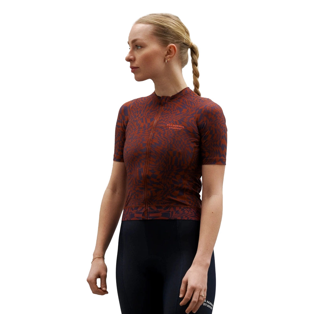 The PAS NORMAL STUDIOS Essential Women Jersey in Check Dark Purple is a must-have for any stylish cyclist. Made with high-quality materials and expert craftsmanship, this jersey is both functional and fashionable. Its sleek design and bold check pattern will make you stand out on the road. The jersey is designed with the active cyclist in mind, featuring a comfortable fit and moisture-wicking fabric to keep you cool and dry. With a full-length zipper, three back pockets, and reflective details for safety, this jersey is perfect for long rides or intense training sessions. Get yours today and elevate your cycling wardrobe.