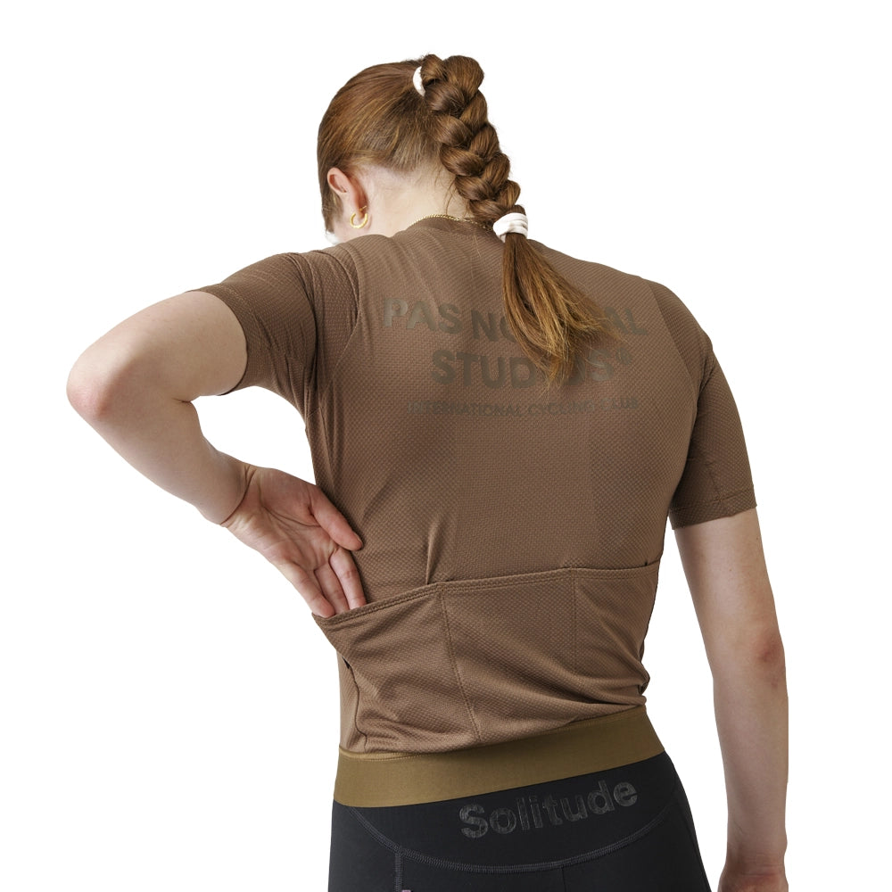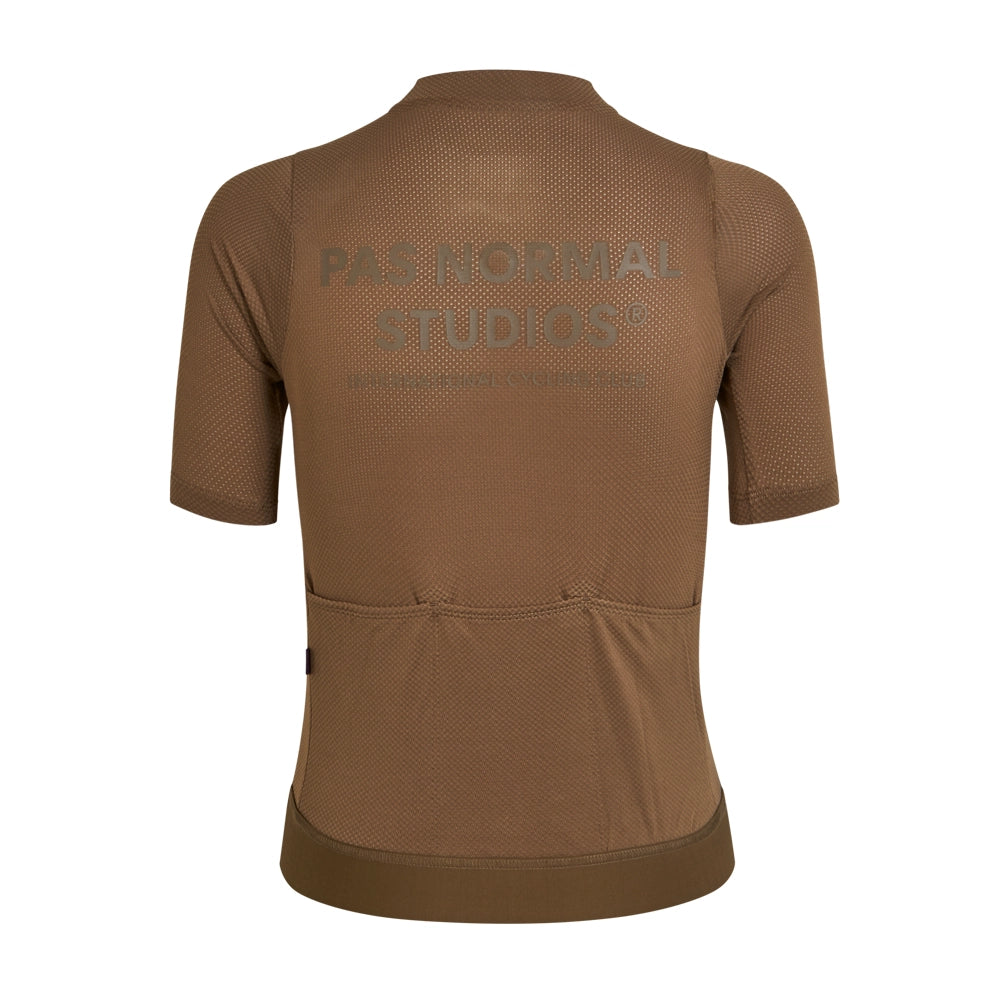 Introducing the PAS NORMAL STUDIOS Solitude Mesh Women Jersey SS23 - Brown, a perfect choice for high summer cycling. This jersey features a unique integrated structured surface that offers a higher strength-to-weight ratio compared to traditional jerseys. Made with lightweight, stretch-woven fabric, it resists color fading and maintains its true colors even after multiple uses. The interior raised texture helps effectively disperse moisture to keep you cool during your rides. With 15 laser-cut panels for a precise fit, this jersey is handcrafted to perfection in Italy.