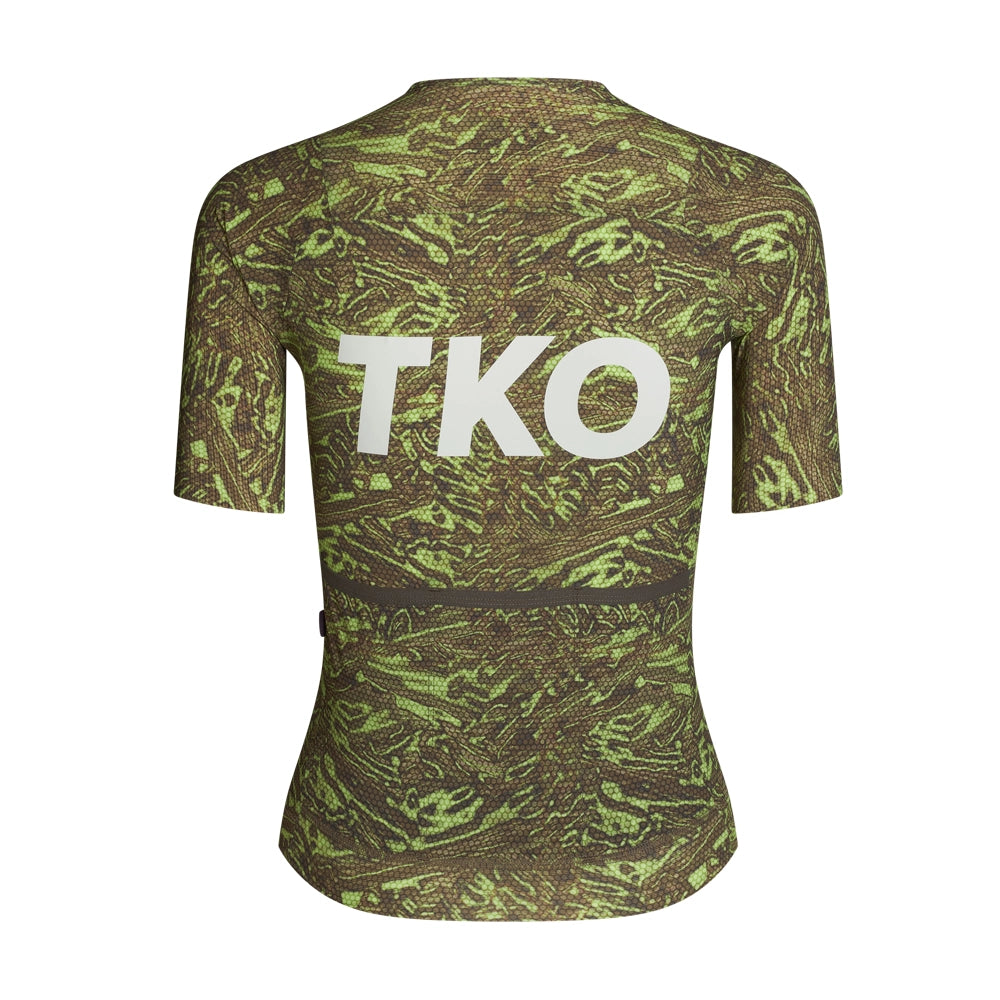 The PAS NORMAL STUDIOS TKO Disorder Mechanism Pro Women Jersey SS23 - Green Beehive is a women's cycling jersey designed for road cycling and training. This jersey is intended to provide a close fit, moisture management, and comfort during high-intensity rides. It is part of the TKO Disorder Mechanism Pro collection from PAS NORMAL STUDIOS, suitable for both competitive and recreational cyclists.