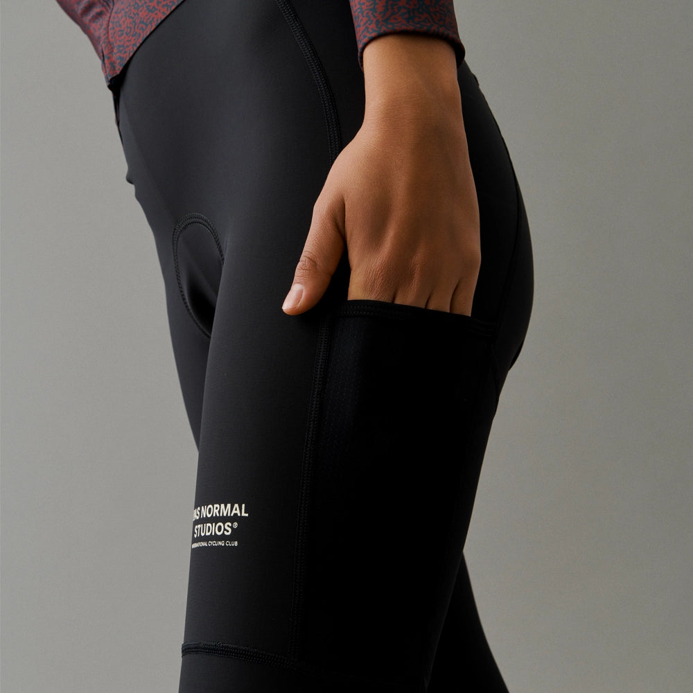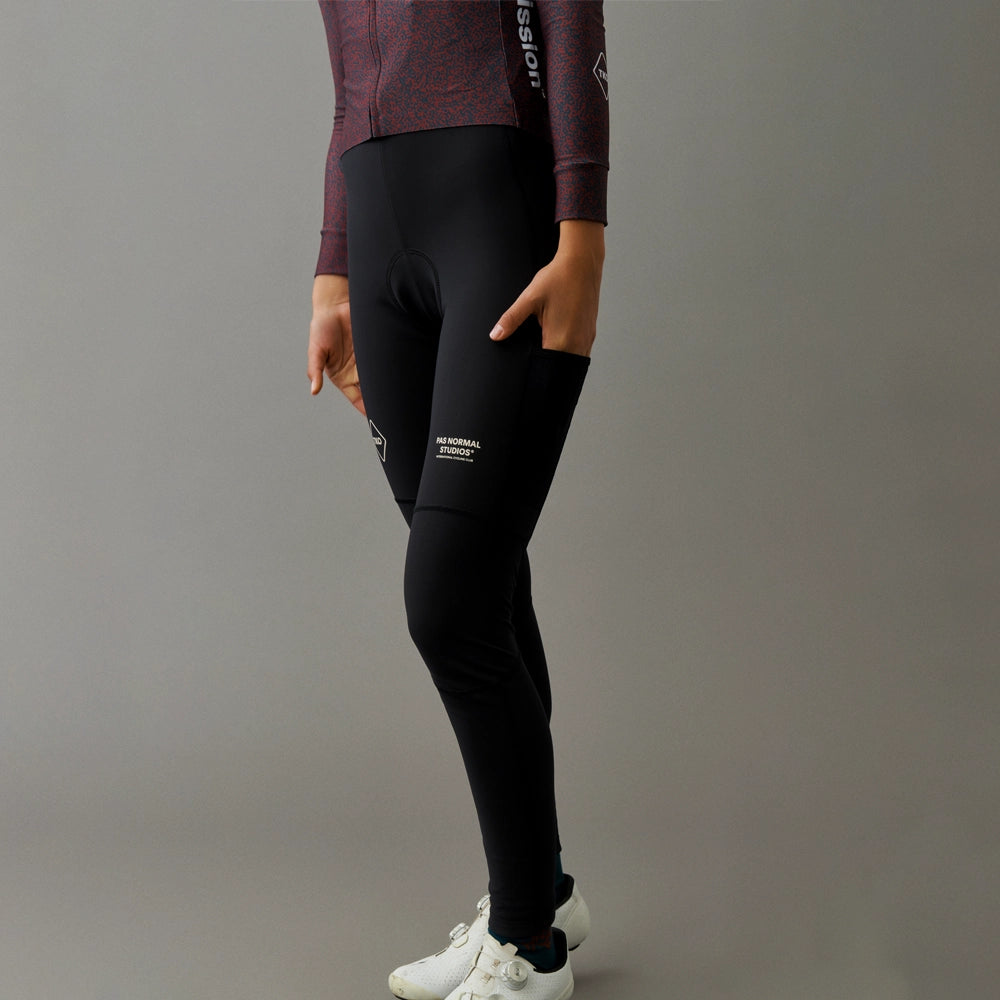 Introducing the PAS NORMAL STUDIOS TKO Women Mechanism Deep Winter Long Bibs in Black Transmission. These versatile bibs are designed for high-performance winter rides, keeping you dry and comfortable in all conditions. Made from Italian Supplex DWR fabric, they offer optimum protection. Reflective details enhance visibility in low light, while mesh fabrics provide breathability. The women's-specific chamois ensures maximum comfort, and adjustable suspenders offer a perfect fit. Ride with confidence in these bibs.