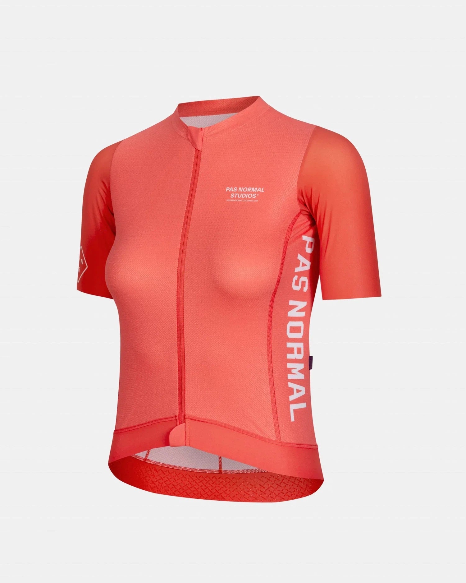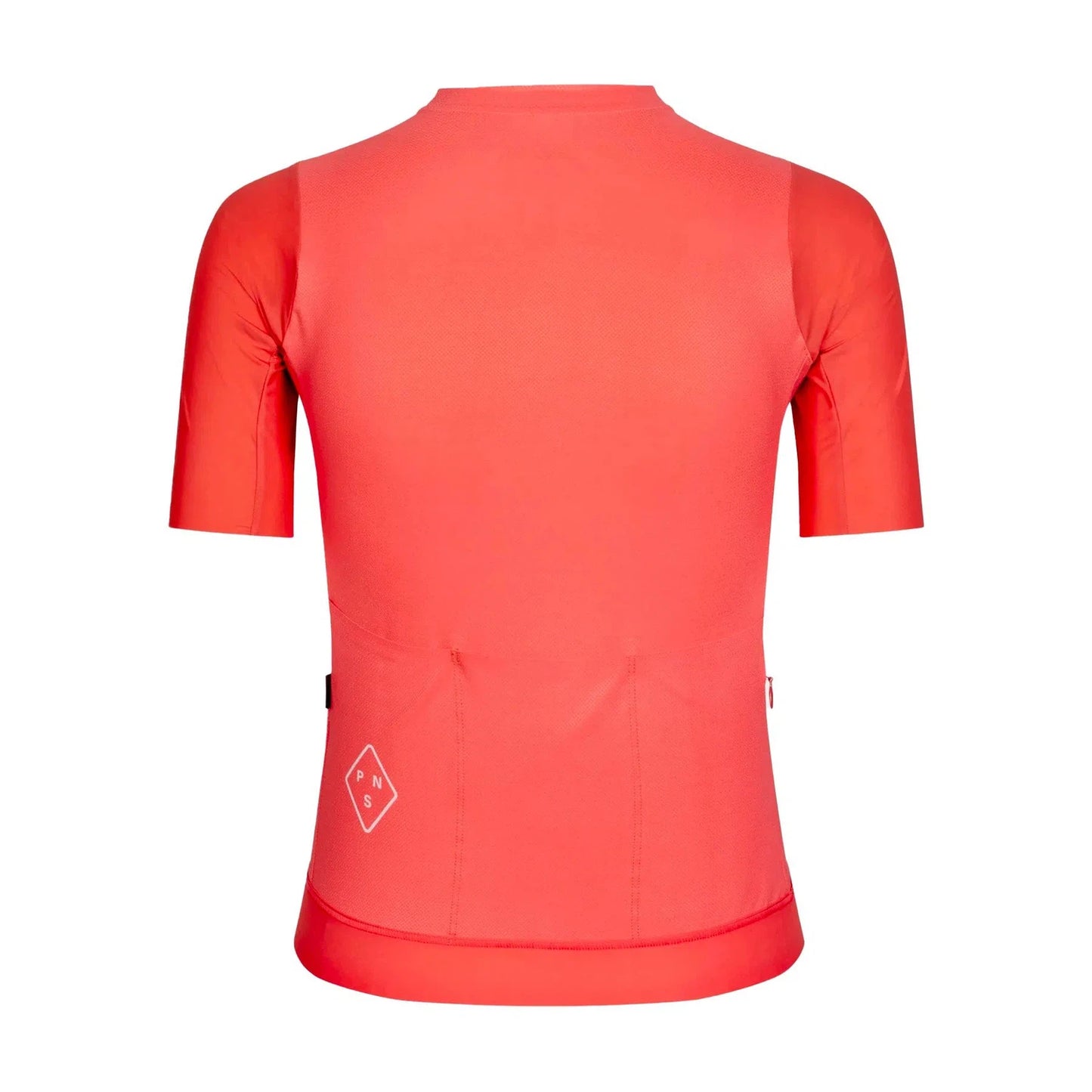 The PAS NORMAL STUDIOS Women Solitude Midsummer Jersey in Deep Rose is a breathable and lightweight cycling jersey designed for high summer rides. Made with a unique integrated structured surface, this jersey offers a higher strength-to-weight ratio compared to traditional cycling jerseys. The lightweight, stretch-woven fabric used across all panels prevents the colors from fading when stretched, ensuring the jersey looks vibrant even after repeated use and washes.