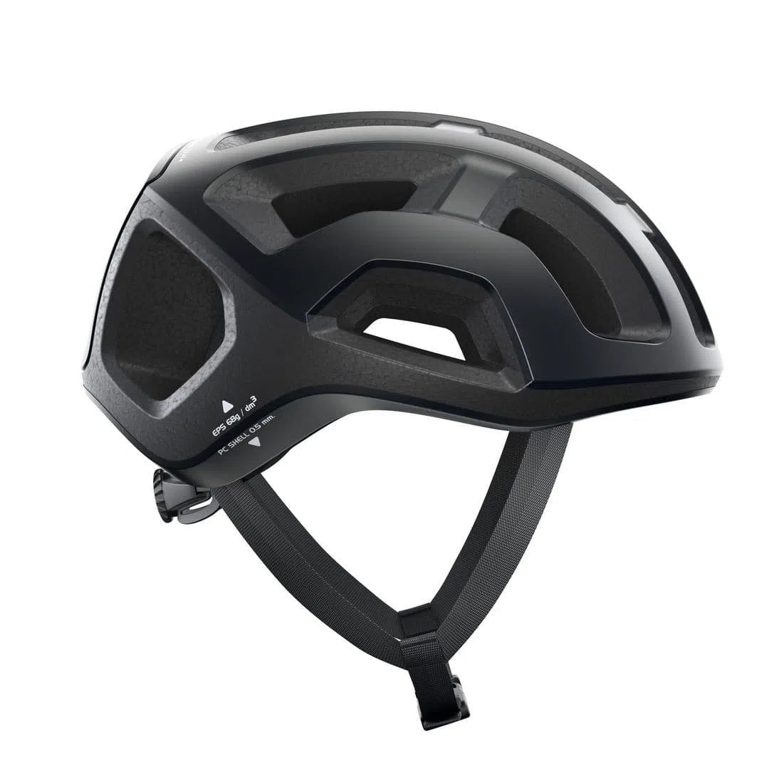 The POC Helmet Ventral Lite in Uranium Black Matt is a lightweight helmet designed for maximum protection with minimal weight. Weighing less than 200g, this helmet features a PC shell that covers less of the liner to reduce overall weight. The minimalist design extends to every aspect of the helmet, including the adjustment system and straps, all while meeting safety standards.