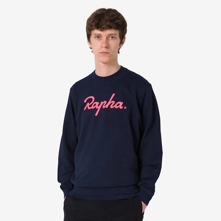 RAPHA Cotton Sweatshirt Large Logo - NHV Dark Navy/High-Vis Pink