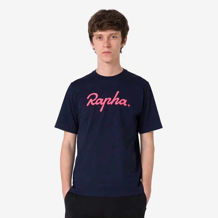 RAPHA Cotton TShirt Large Logo - DNP/Dark Navy/Hi Vis Pink