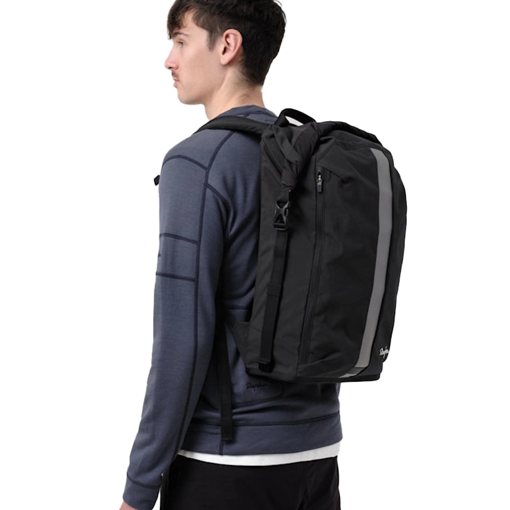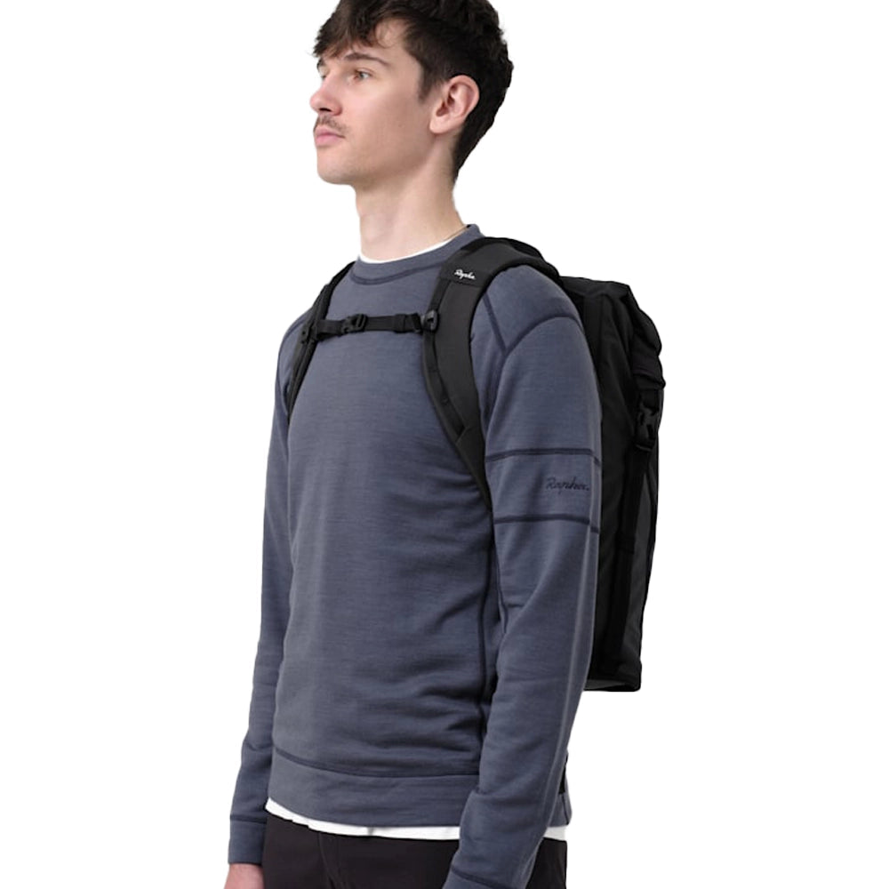 Introducing the RAPHA Roll Top Backpack, a must-have for biking enthusiasts. This backpack features a 20-litre capacity, making it ideal for commuters and recreational riders. The water-resistant material and double strap belt buckle closure keep your items secure and dry. Reflective detailing enhances visibility in low light conditions. Customisable straps ensure comfortable carrying. Combine fashion and function with the RAPHA Roll Top Backpack. The RAPHA Roll Top Backpack 20L features:
