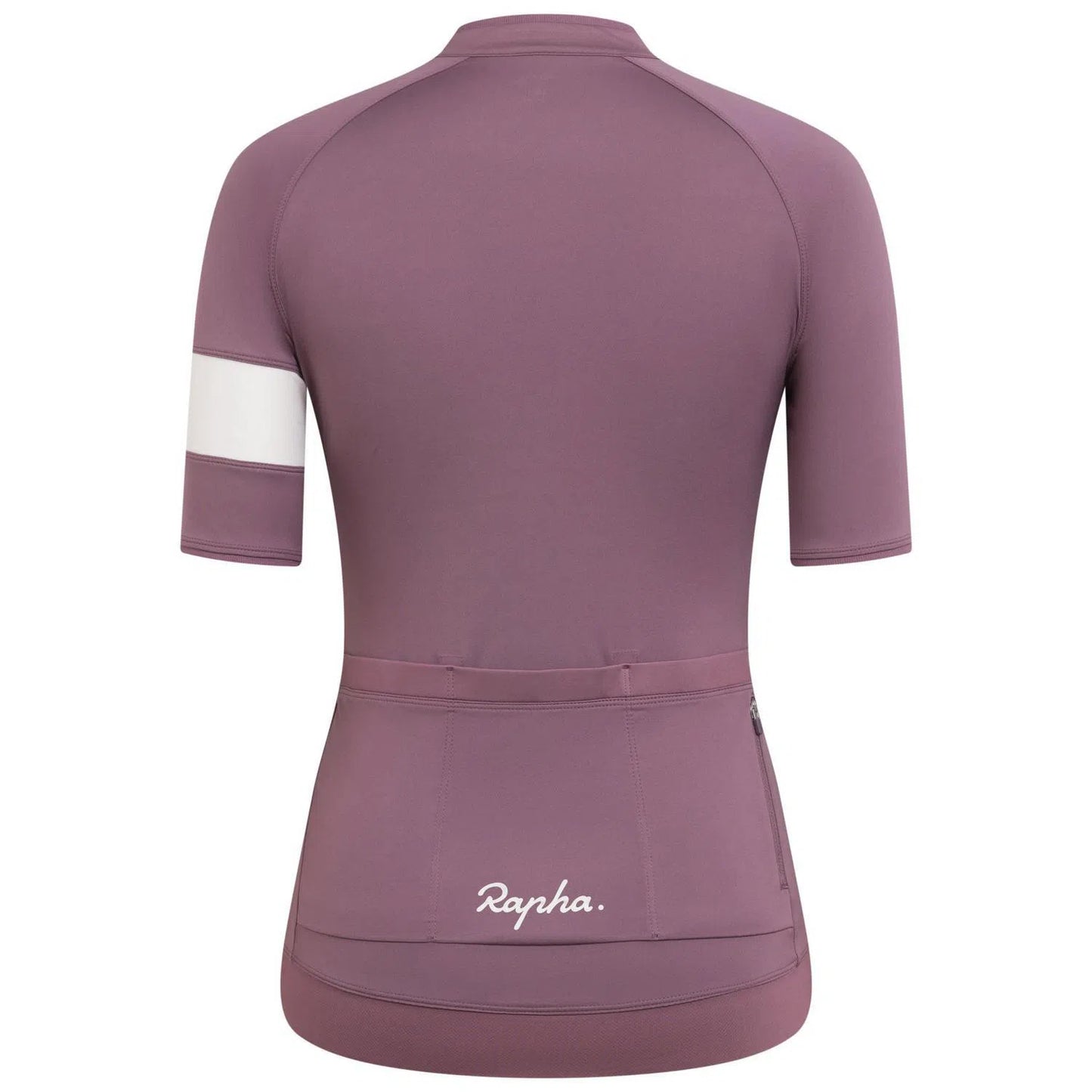 The RAPHA Core Women Jersey in VWH Violet is a must-have for any cyclist. Made with a new stretchy fabric for a comfortable fit, this jersey is soft, breathable, and stylish. The design features contrast logos, raglan sleeves, and laser-cut silicon on the rear waist to keep it in place. With 3 rear pockets and an elastic hem, you can carry your essentials securely. The Rapha Core Jersey is perfect for everyday rides and is a favorite among cyclists worldwide. For warmer days, try the CORE LIGHTWEIGHT version with ultralight fabrics for extra comfort.