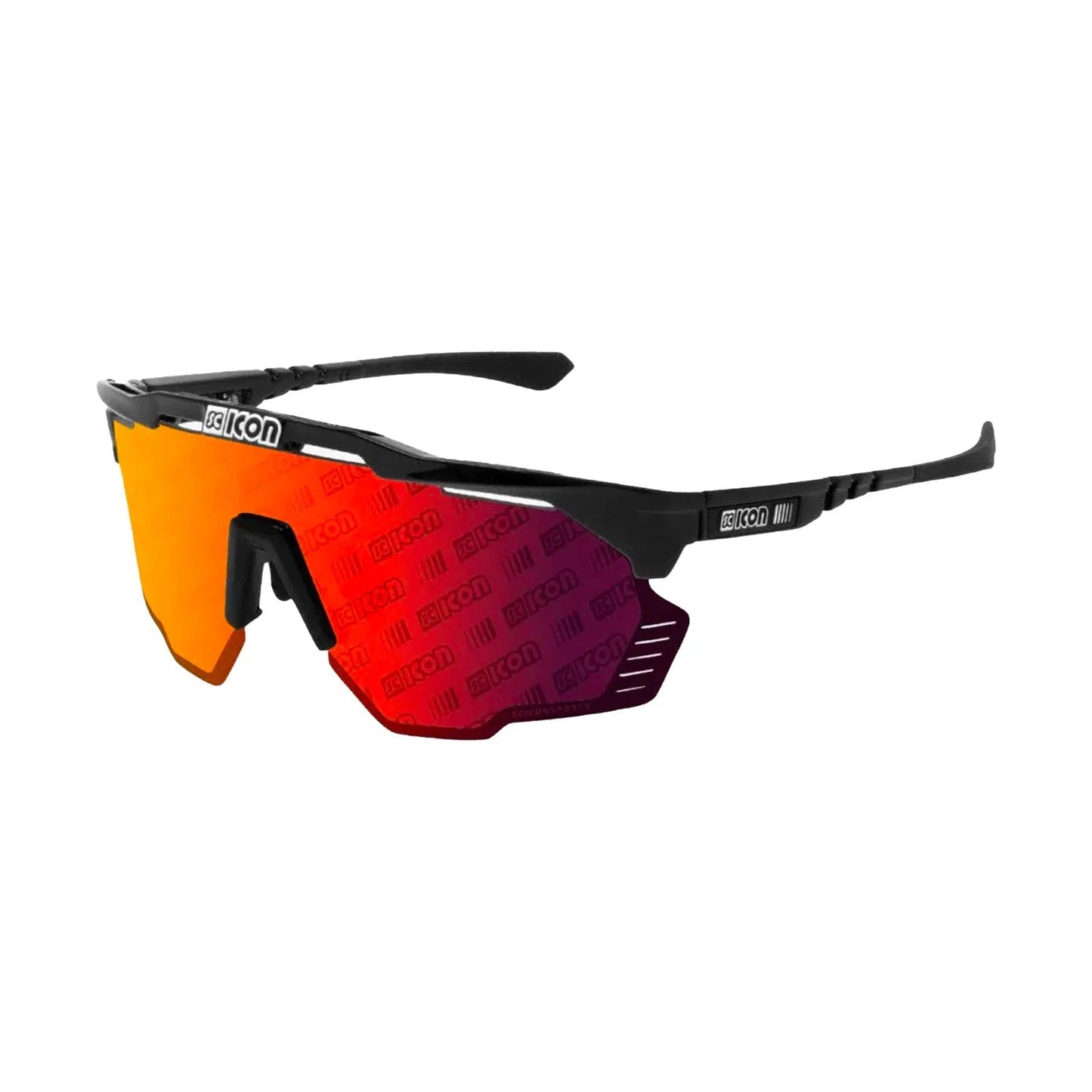 The SCICON Aeroshade Kunken Monogram Eyewear in Black Gloss/Multimirror Red is a performance-oriented cycling eyewear product designed to provide eye protection and visual clarity during rides. Suitable for road cycling, racing, and training, this eyewear is engineered to shield the eyes from wind, debris, and sunlight. The model is produced by SCICON, a recognized brand in cycling accessories.