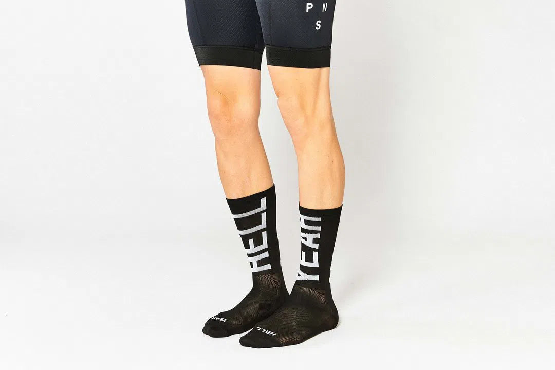 The FINGERSCROSSED Socks Hell Yeah 2.0-Black are designed for both style and performance. These socks are triple-strengthened in the toes and heels for comfort and durability, using PROLEN®YARN for top cycling features.