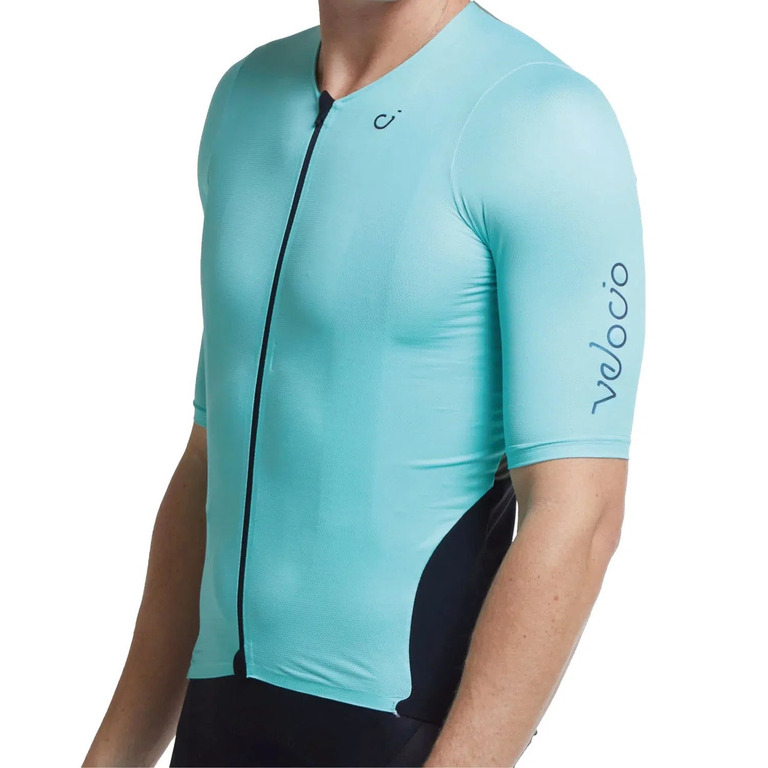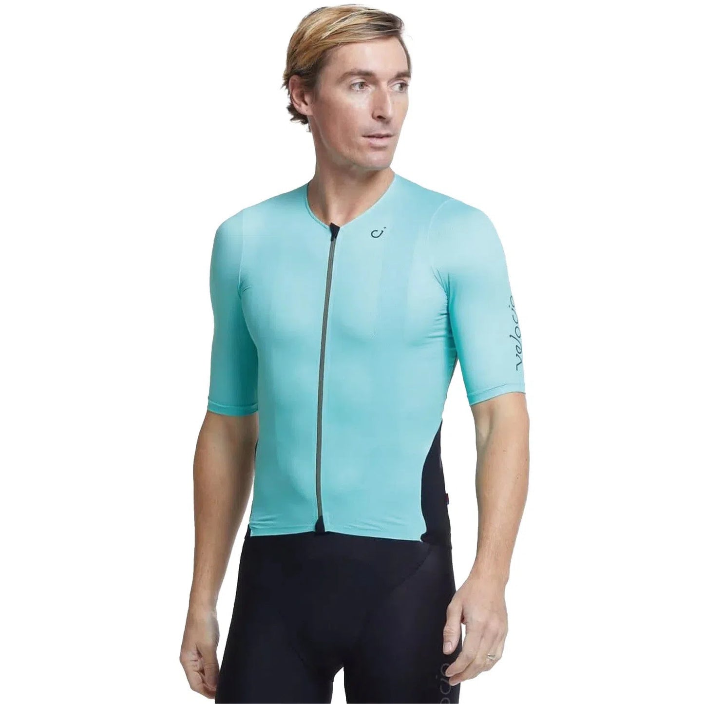 The VELOCIO Concept jersey in Celeste / Dark Olive is a cycling jersey designed for road and performance cycling. It is intended to provide a close fit and efficient moisture management during training or racing. This model is suitable for cyclists seeking technical apparel for a range of weather conditions.