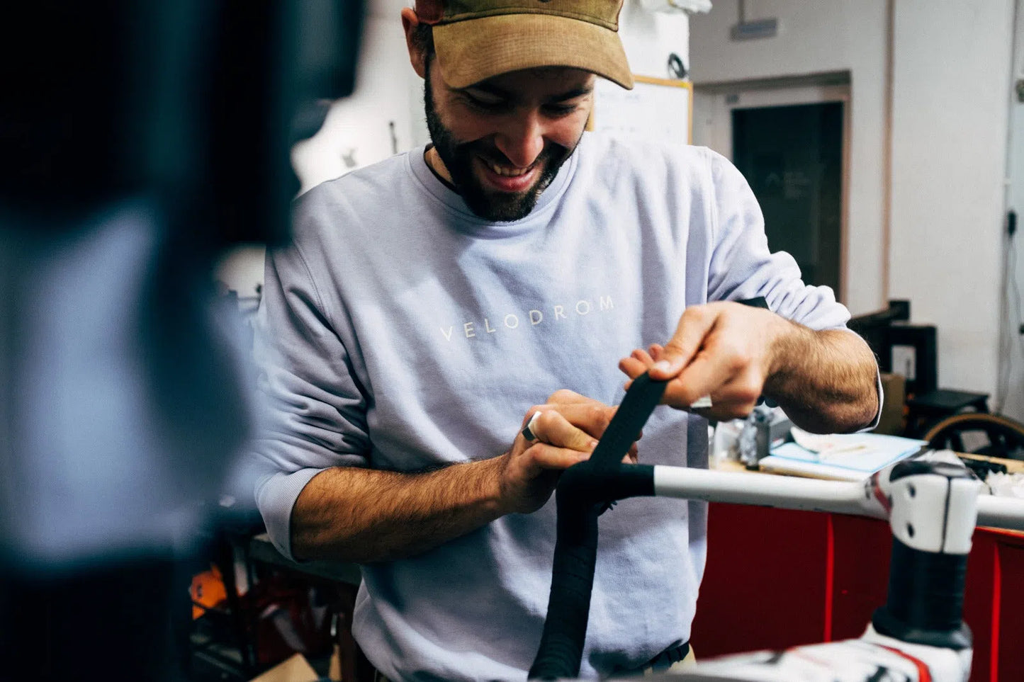 Our new VELODROM VCC Logo Sweatshirt in Lavanda is made with sustainable organic cotton and printed with serigraphy in Barcelona by 43 Hilos. This classic cycling casual silhouette is perfect for everyday wear.