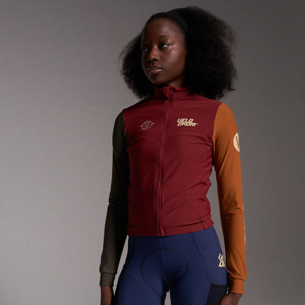 VELODROM RaceDay Thermal Long Sleeve Jersey AW23 - Burgundy Dual Sleeves