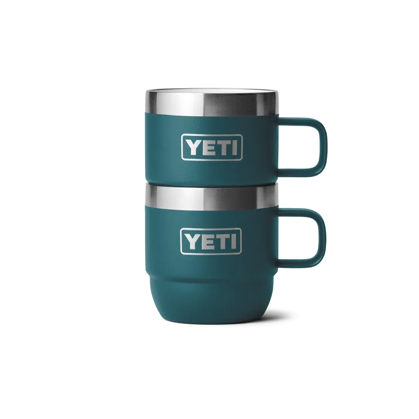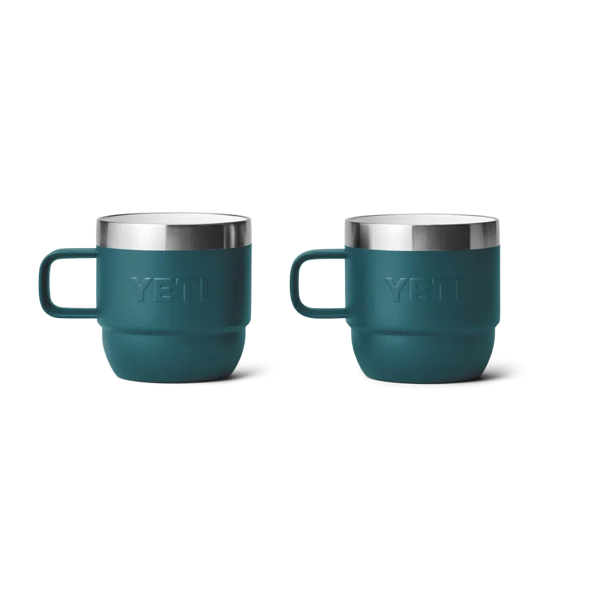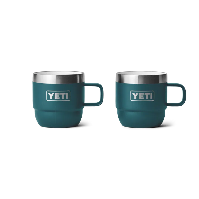 Experience cafe-style convenience on the go with the YETI Rambler 6 OZ 177 ML Stackable Mugs in Agave Teal. This pack of two durable mugs is perfect for sharing or enjoying an extra cup yourself. Designed to fit most espresso machines, these stackable mugs are compact and ideal for travel. The vibrant Agave Teal color adds style to your routine. Splash-resistant and dishwasher safe, these mugs are easy to clean. Don't compromise on quality or convenience with the YETI Rambler Stackable Mugs.